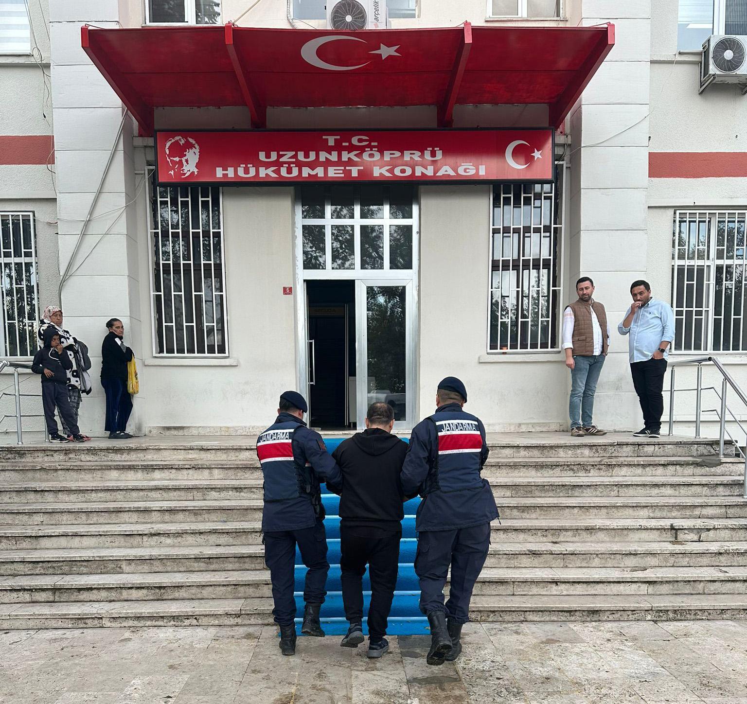Ünsal YÜCEL/EDİRNE,(DHA)-EDİRNE'nin Uzunköprü ilçesinde, aranması olan ve jandarma ekiplerince trafik uygulamasında yakalanarak, gözaltına alınan A.T. tutuklandı.