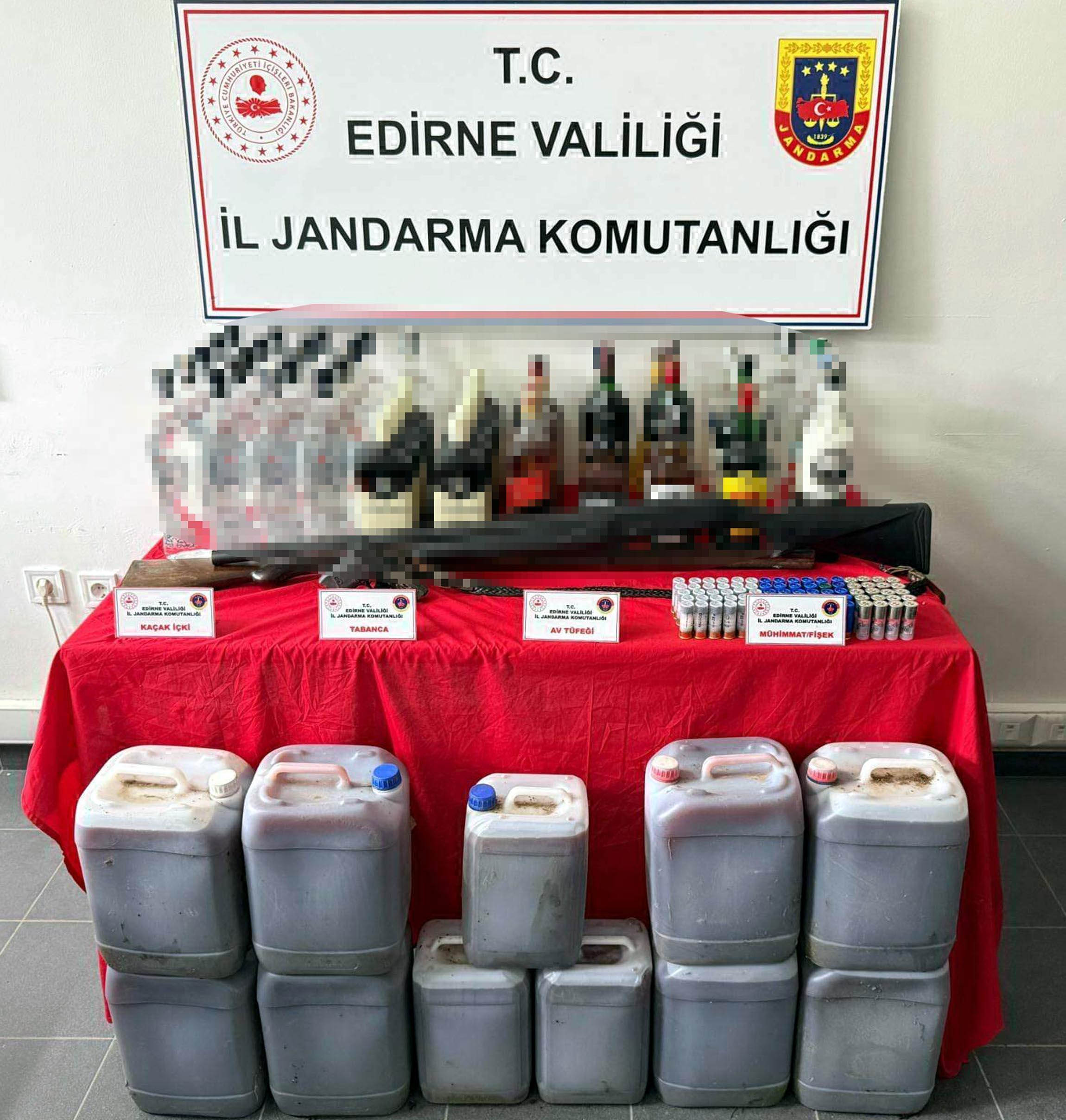 İl Jandarma Komutanlığı Kaçakçılık ve Organize Suçlarla Mücadele Şube Müdürlüğü ekipleri, Uzunköprü'nün Kırkkavak köyünde Ö.D.'nin evinde arama yaptı. Aramada, 59 litre kaçak içki 105 litre sahte şarap, ruhsatsız 2 av tüfeği, 1 kurusıkı tabanca, 85 tüfek fişeği ele geçirildi. Gözaltına alınan Ö.D., hakkında adli işlem başlatıldı. (DHA)