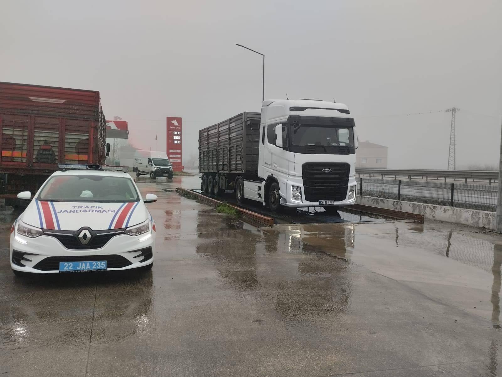 Edirne'de taşıma sınırını aşan 2 kamyon sürücüsüne 159 bin lira ceza