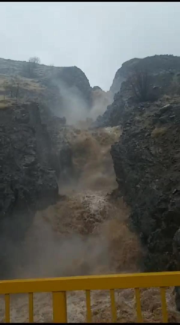 Meteoroloji 13’üncü Bölge Müdürlüğü'nün uyarı yaptığı kentler arasında bulunan Elazığ'da sağanak etkili oldu. Arıcak ilçesinde 2 dağ arasından dökülen Sori Şelalesi, sağanak ile taştı. Taşkın anları, cep telefonu kamerası ile görüntülendi. Kentte sağanak sürüyor.(DHA) FOTOĞRAFLI