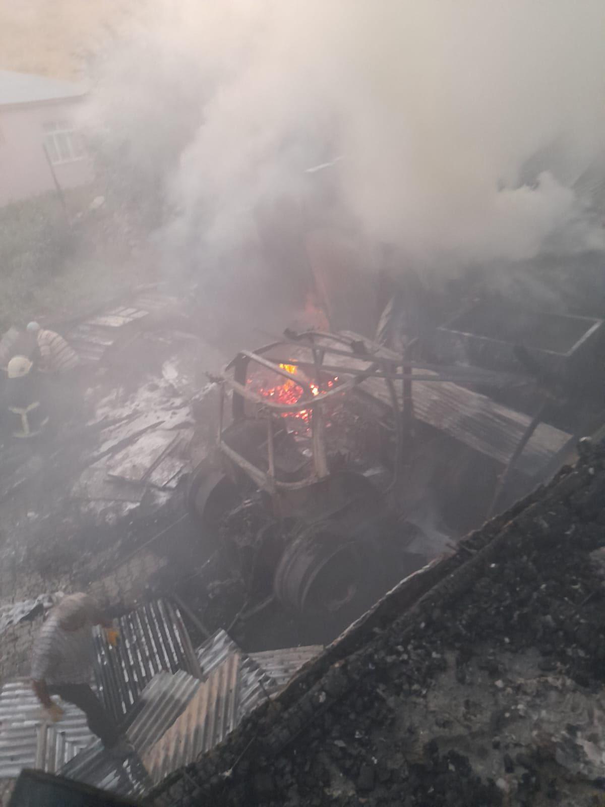 Elazığ’da park halindeki traktör alev alarak yandı