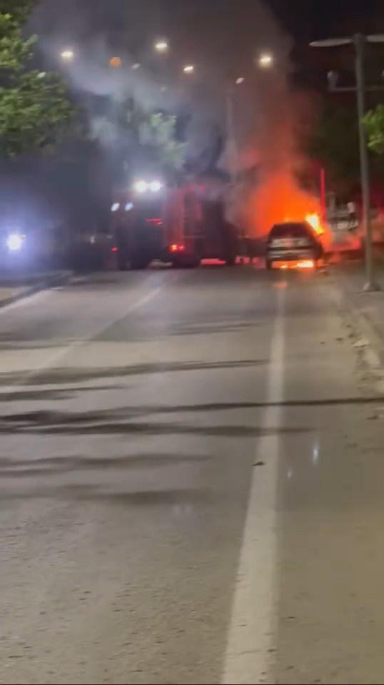 Yangın, gece saatlerinde Ahmet Kabaklı Bulvarı’nda meydana geldi. Seyir halindeki otomobilin motor kısmından alevlerin yükseldiğini sürücü, aracı sağa çekerek durumu 112 Acil Çağrı Merkezi’ne bildirdi. İhbarla bölgeye itfaiye ekipleri sevk edildi. Ekiplerin müdahalesiyle söndürülen yangında, otomobil kullanılamaz hale geldi. (DHA)