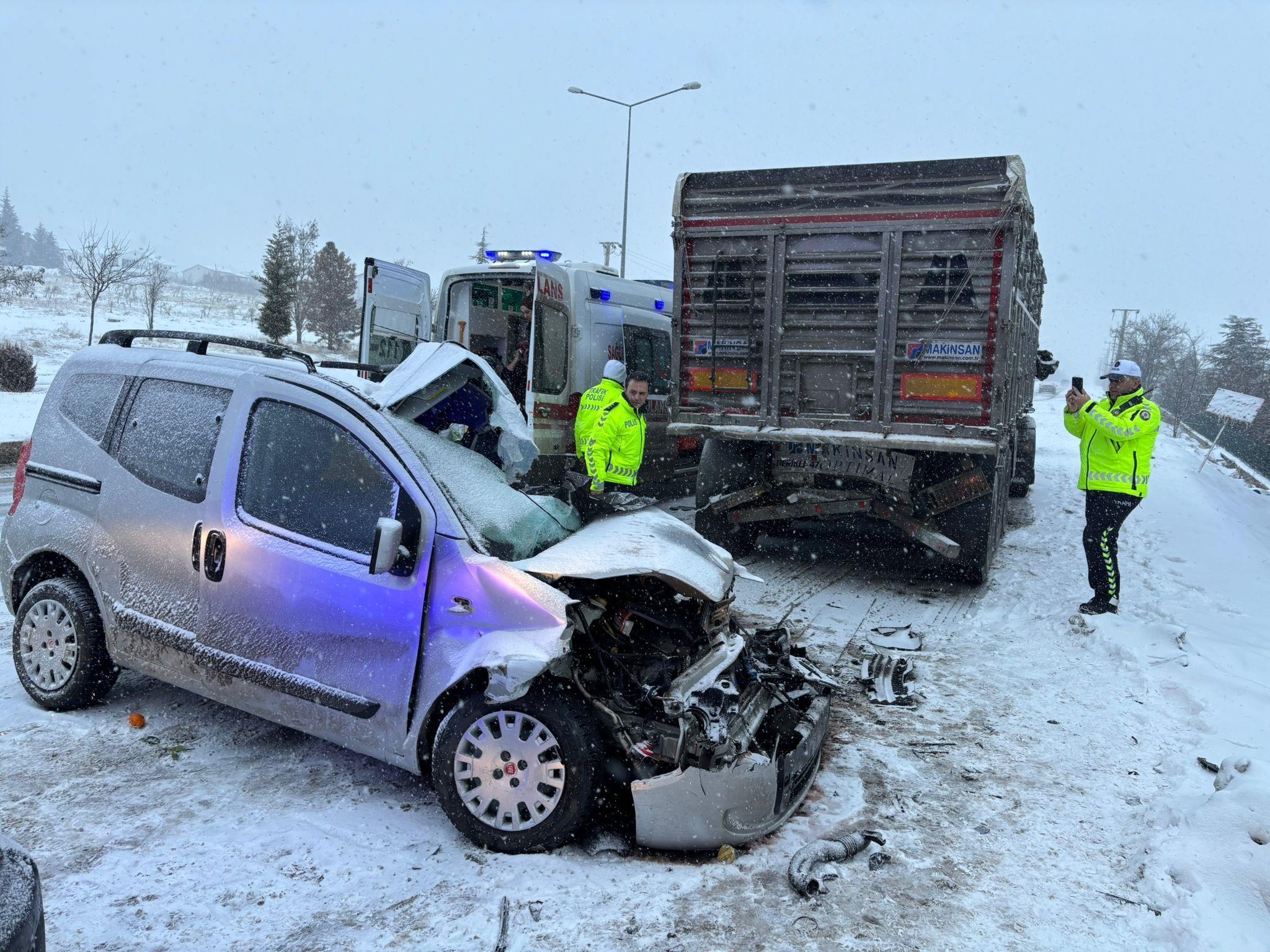 Tekin YALÇINKAYA/ELAZIĞ,(DHA)- ELAZIĞ’da, kar yağışı nedeniyle kayganlaşan yolda kontrolden çıkarak park halindeki kamyona arkadan çarpan hafif ticari aracın sürücüsü Ümit Avcı (67) ve yanındaki eşi Nurten Avcı (61), hayatını kaybetti.