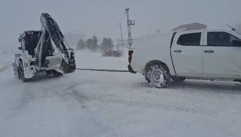 Tekin YALÇINKAYA/SİVRİCE (Elazığ), (DHA)- ELAZIĞ’ın Sivrice ilçesinde etkili olan kar yağışı ve tipi nedeniyle kara saplanarak mahsur kalan araçlar, İl Özel İdaresi ekiplerinin çalışmasıyla bulundukları yerden kurtarıldı.