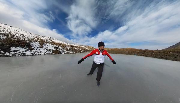 3 bin 549 rakımlı Keşiş Dağı'ndaki gölette buz pateni