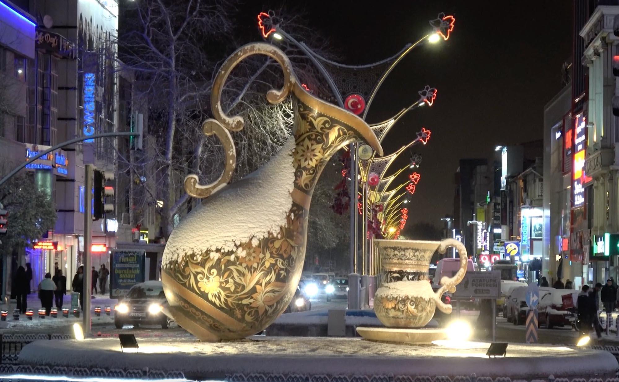 Kentte akşam saatlerinde etkili olan kar yağışı sonrası şehir merkezi beyaza büründü. Beyaz örtü ile kaplanan kent merkezi, dronla görüntülendi. Diğer yandan kar yağışı sonrası dışarıya çıkanlar, bol bol fotoğraf ve video çekti. Belediye ekipleri de yollarda tuzlama ve kar küreme çalışması yaptı. (DHA)