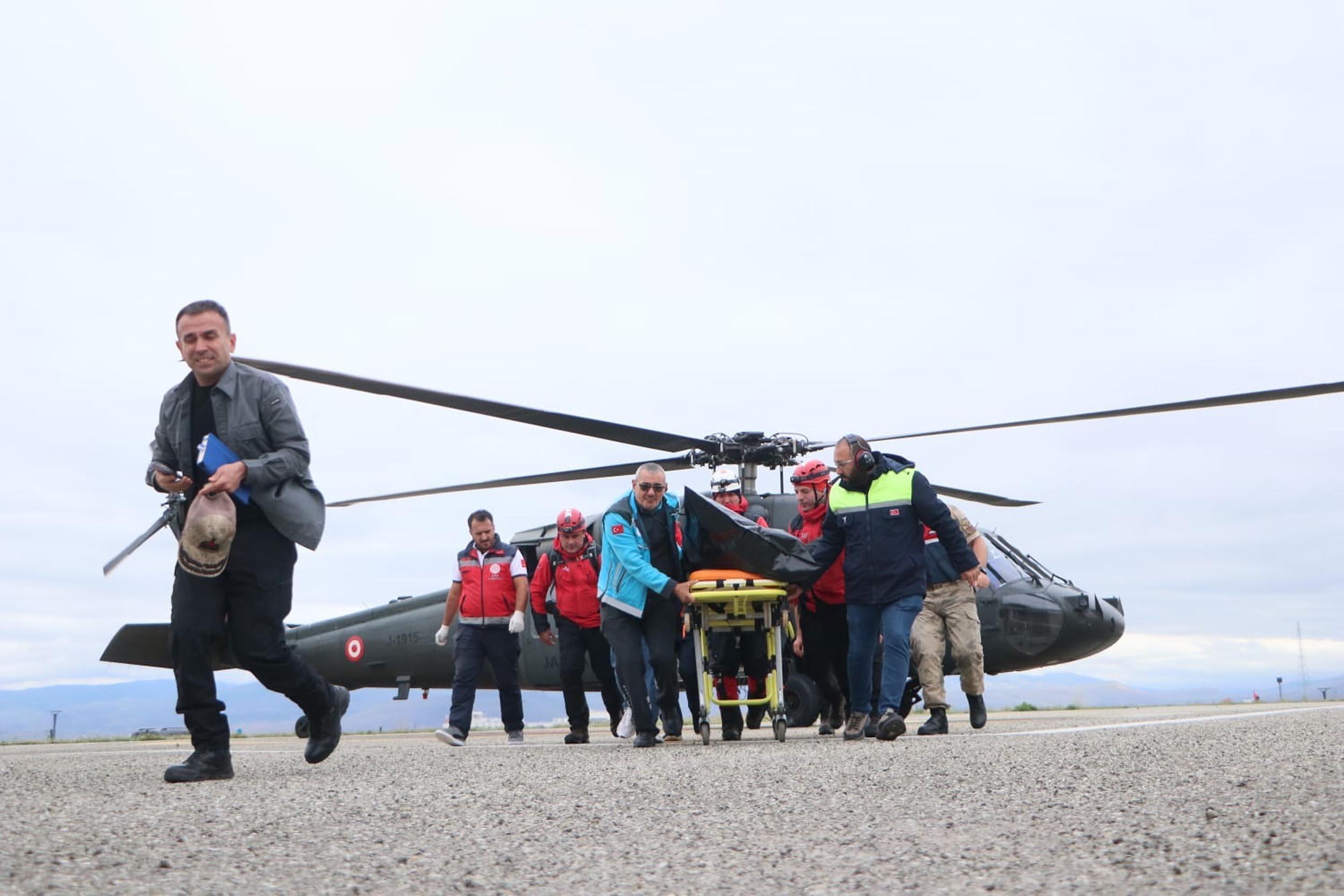 Eskişehir'den dünya turuna çıkmak için havalandıktan sonra M20J tipi tek motorlu uçağının Rize- Erzurum sınırında Kaçkar Dağları'nda düşmesi sonucu yaşamını yitiren pilot Mehmet Demirci'nin cansız bedeni, Jandarma Arama Kurtarma (JAK) Timleri tarafından olay yerinden alınarak helikopterle Erzurum'a gönderildi. Erzurum Şehir Hastanesi pistine gelen helikopterden alınan Demirci'nin cansız bedeni, ambulansla Adli Tıp Kurumu morguna götürüldü. (DHA)