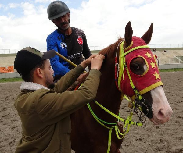 Erzurum'da başlayan cirit liginde müsabaka öncesi atlara çip kontrolü