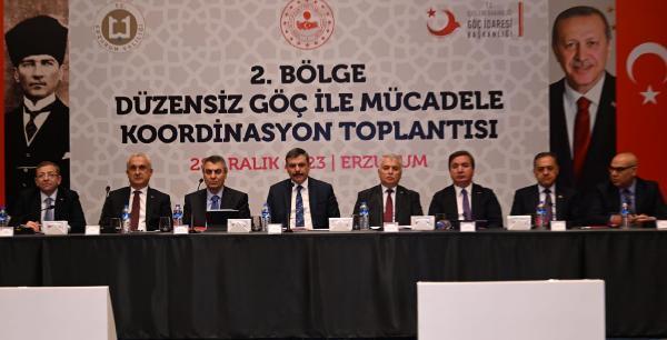Erzurum'un ev sahipliğinde ikincisi düzenlenen 'Düzensiz Göçle Mücadele Koordinasyon Toplantısı'na Göç İdaresi Başkanı Atilla Toros, Erzurum, Trabzon, Muş, Erzincan, Kars, Ağrı, Tunceli, Bingöl, Bayburt, Artvin, Gümüşhane, Rize, Iğdır, Ardahan valileri, 9'uncu Kolordu ve Garnizon Komutanı Tümgeneral Tevfik Algan, Erzurum Cumhuriyet Başsavcısı Hüseyin Tuncel, Göç İdaresi Başkan Yardımcısı Önder Bakan, Düzensiz Göçle Mücadele ve Sınır Dışı İşleri Genel Müdürü Ramazan Seçilmiş, Sınır Dışı İşleri Daire Başkanı Ahmet Küçükikiz, emniyet müdürleri, jandarma komutanları, Sahil Güvenlik Doğu Karadeniz Grup komutanları ile Göç İdaresi müdürleri katıldı.