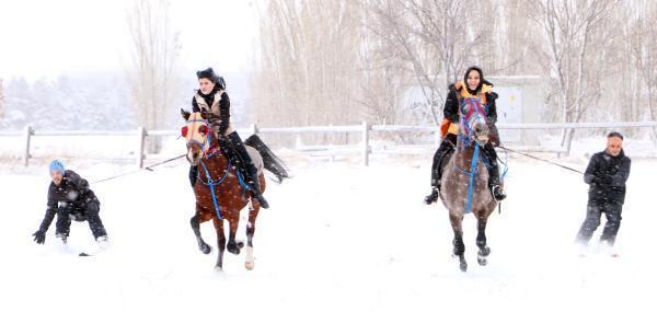 Turgay İPEK/ ERZURUM, (DHA)- ERZURUM Atatürk Üniversitesi Ata Manej Alanı ve Atçılık Koordinatörlüğü'nde görevli at antrenörü ve öğrencileri, karla kaplı kampüste dörtnala koşturdukları atlara bağladıkları iplerle kayakseverlere adrenalin dolu anlar yaşattı.