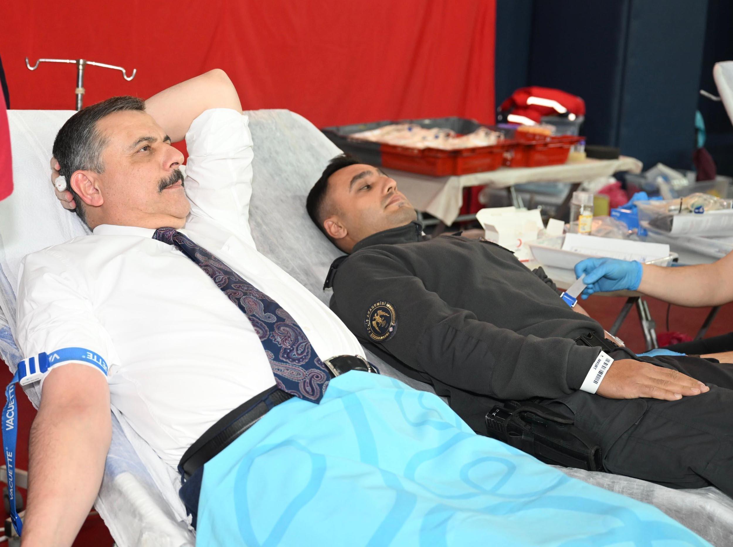 ERZURUM,(DHA)-ERZURUM Polis Meslek Eğitim Merkezi'nde öğrenim gören polis öğrenciler, kan ve kök hücre bağışında bulundu. 45'inci kez kan bağışında bulunan Vali Mustafa Çiftçi'ye plaket verildi.