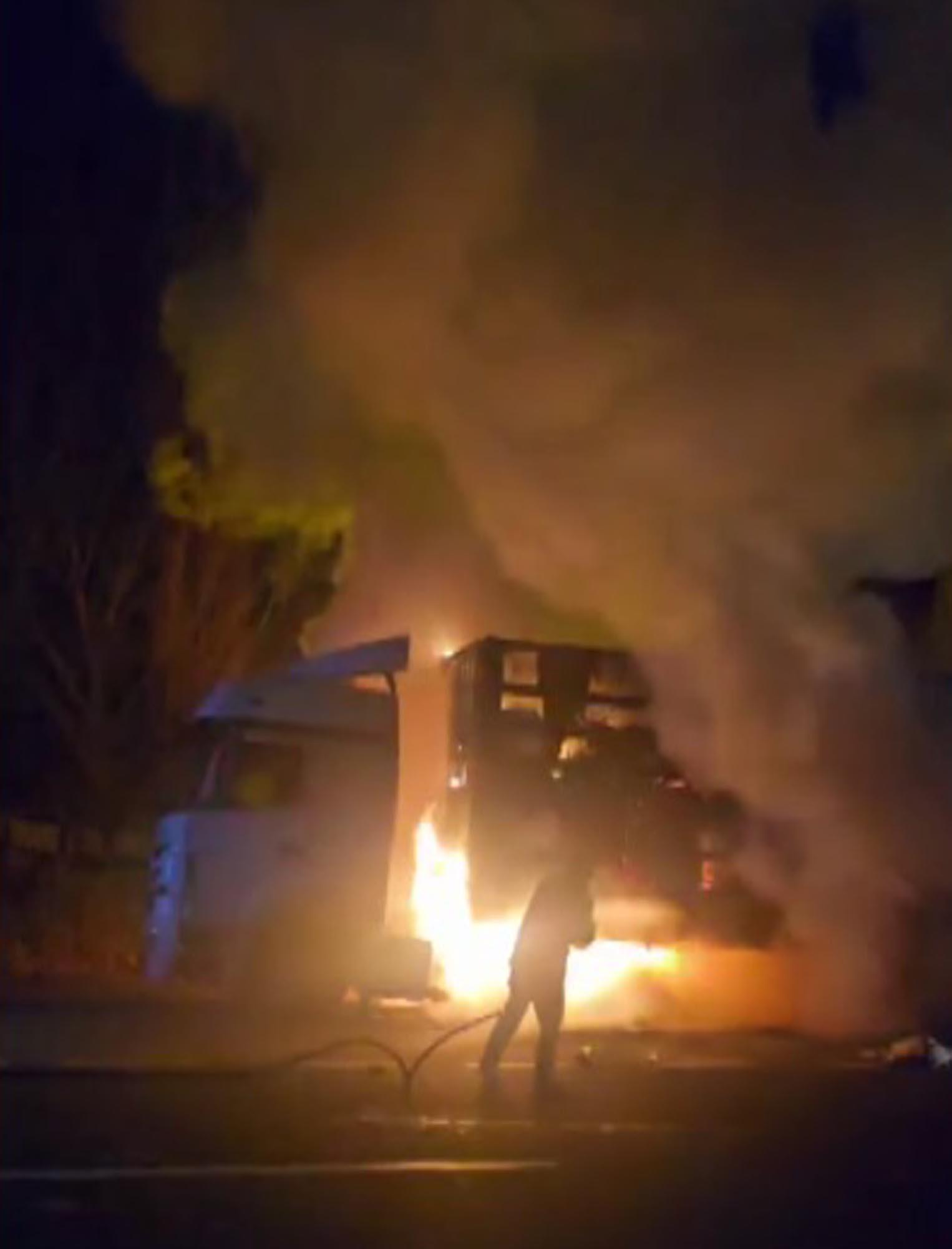 Gürcistan'dan Mardin'e pamuk taşıyan Şekip Çakmak'ın kullandığı TIR, Erzurum’un Horasan ilçesine 15 kilometre mesafede dorsesinden alev aldı. Durum fark eden sürücü, TIR'ı sağa çekerek itfaiyeye haber verdi. İhbar üzerine bölgeye sevk edilen itfaiye ekipleri, yangına müdahale ederek söndürüldü. TIR'ın dorsesinin zarar gördüğü yangının çıkış nedeninin belirlenmesi için çalışma başlatıldı. (DHA)
