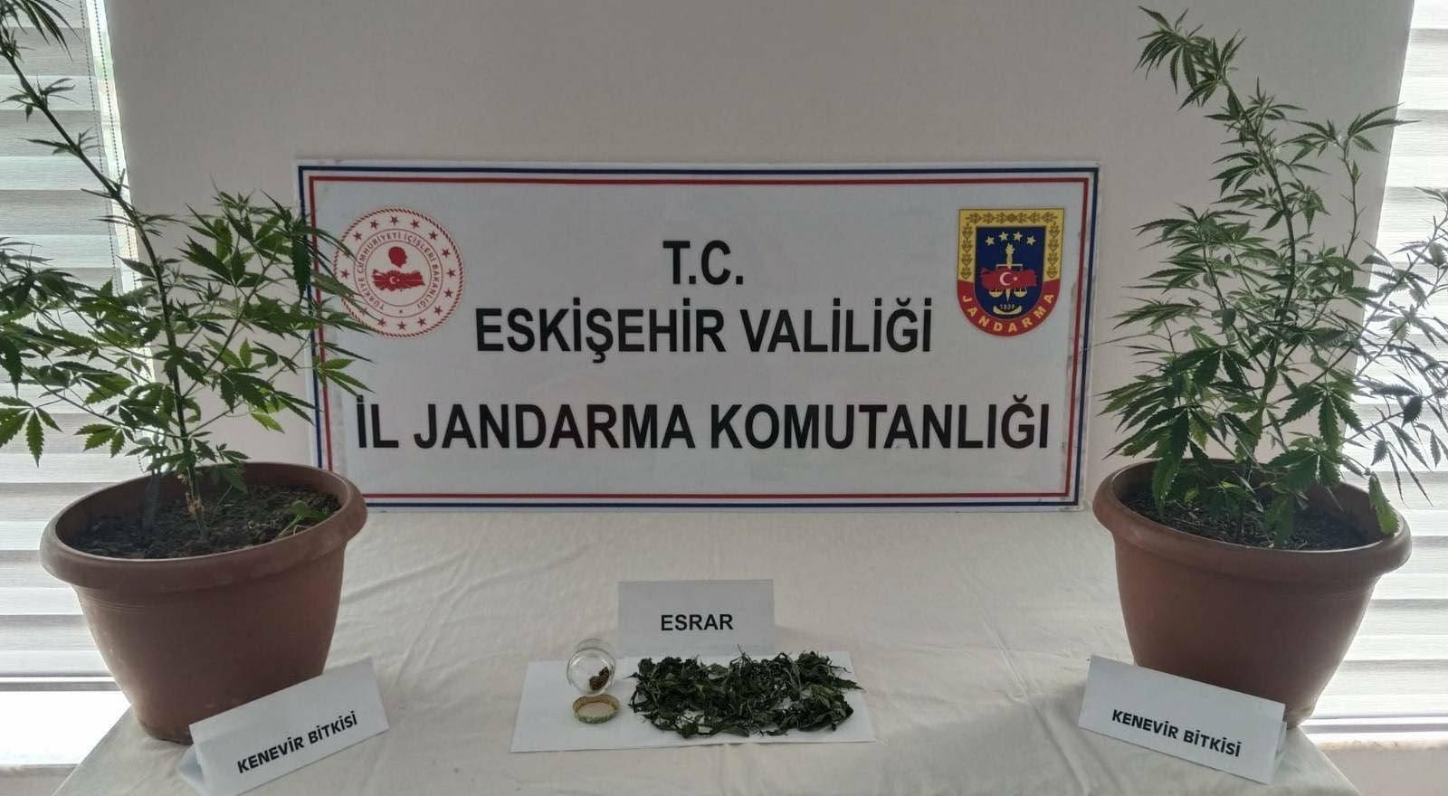 Eskişehir Jandarma Komutanlığı ekipleri, Odunpazarı ilçesinde bir şüphelinin evinin balkonuna esrar elde etmek için kenevir bitkisi ektiği bilgisi üzerine harekete geçti. Şüphelinin evi ve eklentilerinde yapılan aramada, evin balkon kısmında saksılar içerisinde bakımları yapılmış 2 kök kenevir bitkisi ile 47 gram esrar maddesi ele geçirildi. Şüpheli hakkında ‘uyuşturucu maddelerin murakabesi hakkında kanuna muhalefet ve kullanmak için uyuşturucu ve uyarıcı madde bulundurmak, satın almak veya kabul etmek’ suçundan adli soruşturma başlatıldı. (DHA)