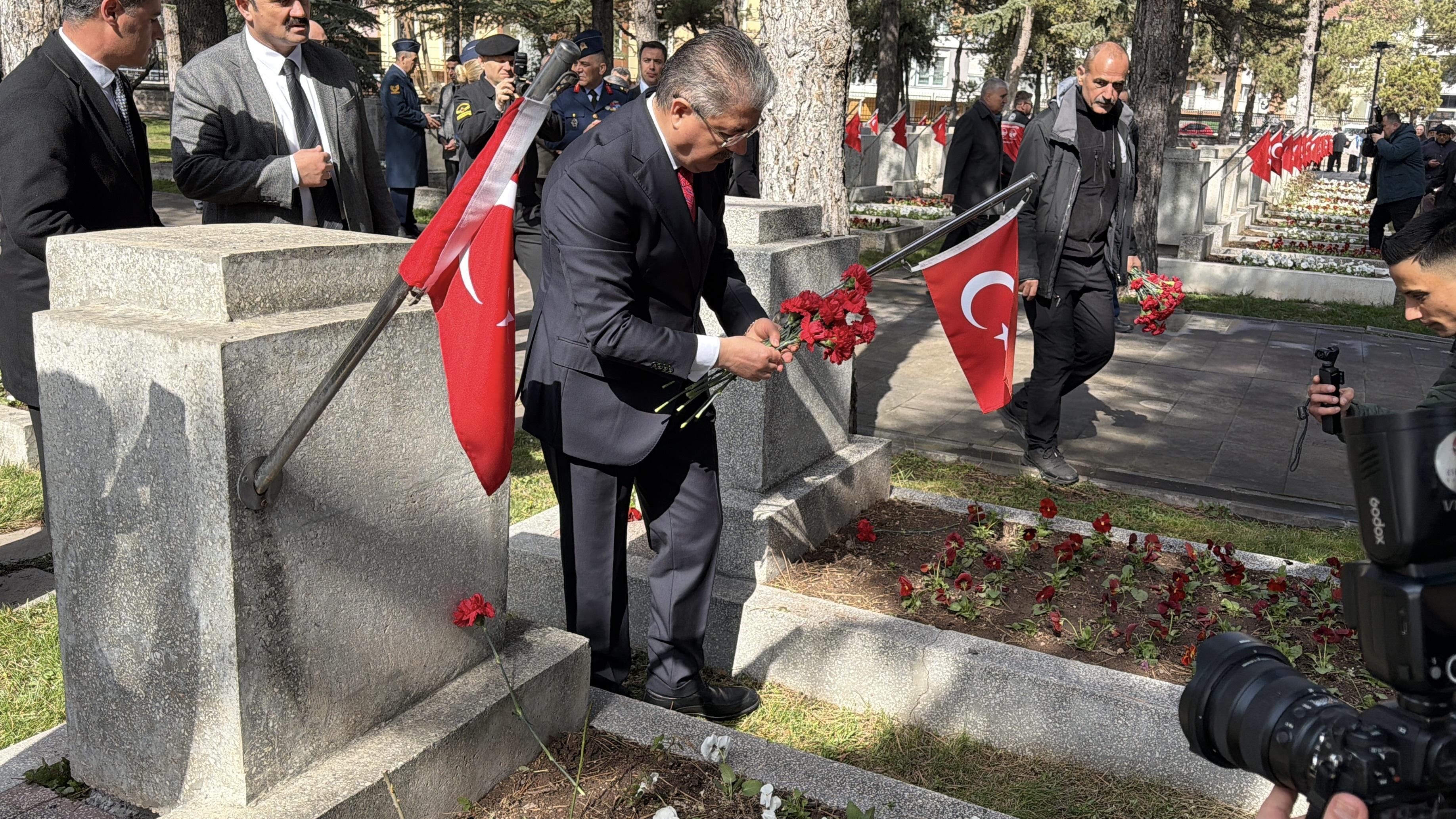 Törenin ardından Vali Erdinç Yılmaz ve beraberindekiler şehit mezarlarına karanfil bıraktı. (DHA)