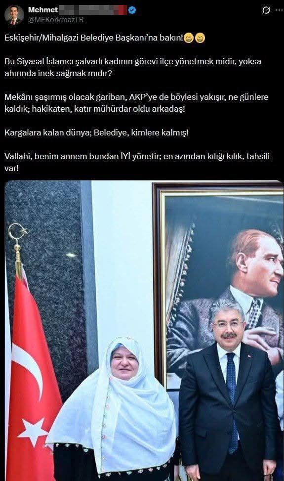 AK Parti Eskişehir İl Başkanı Gürhan Albayrak, Mihalgazi Belediye Başkanı Zeynep Akgün'ü hedef alan paylaşıma tepki gösterdi. Albayrak, paylaşımda, "Anadolu kadınının şalvarını ve geleneksel kıyafetini "cahillik" sanan bu üstenci zihniyet, aslında kendi cehaletini sergilemiştir. 3 dönemden bu yana Mihalgazili hemşehrilerimizin oylarıyla seçilmiş bir başkana kılık ve kıyafet üzerinden saldırmak, bu milletin değerlerine hakaret etmektir. Milletin iradesini ve kıyafetini hedef alan bu hadsiz dili kınıyoruz. Bu toprakların özüyle kavga edenler, her zaman kaybetmeye mahkumdur. Sizin kibriniz, bizim Anadolu irfanımızı yenemedi ve asla da yenemeyecek. Kenef ağızlı bu tiplere karşı Zeynep Güneş başkanımızın her daim yanındayız" dedi. (DHA)