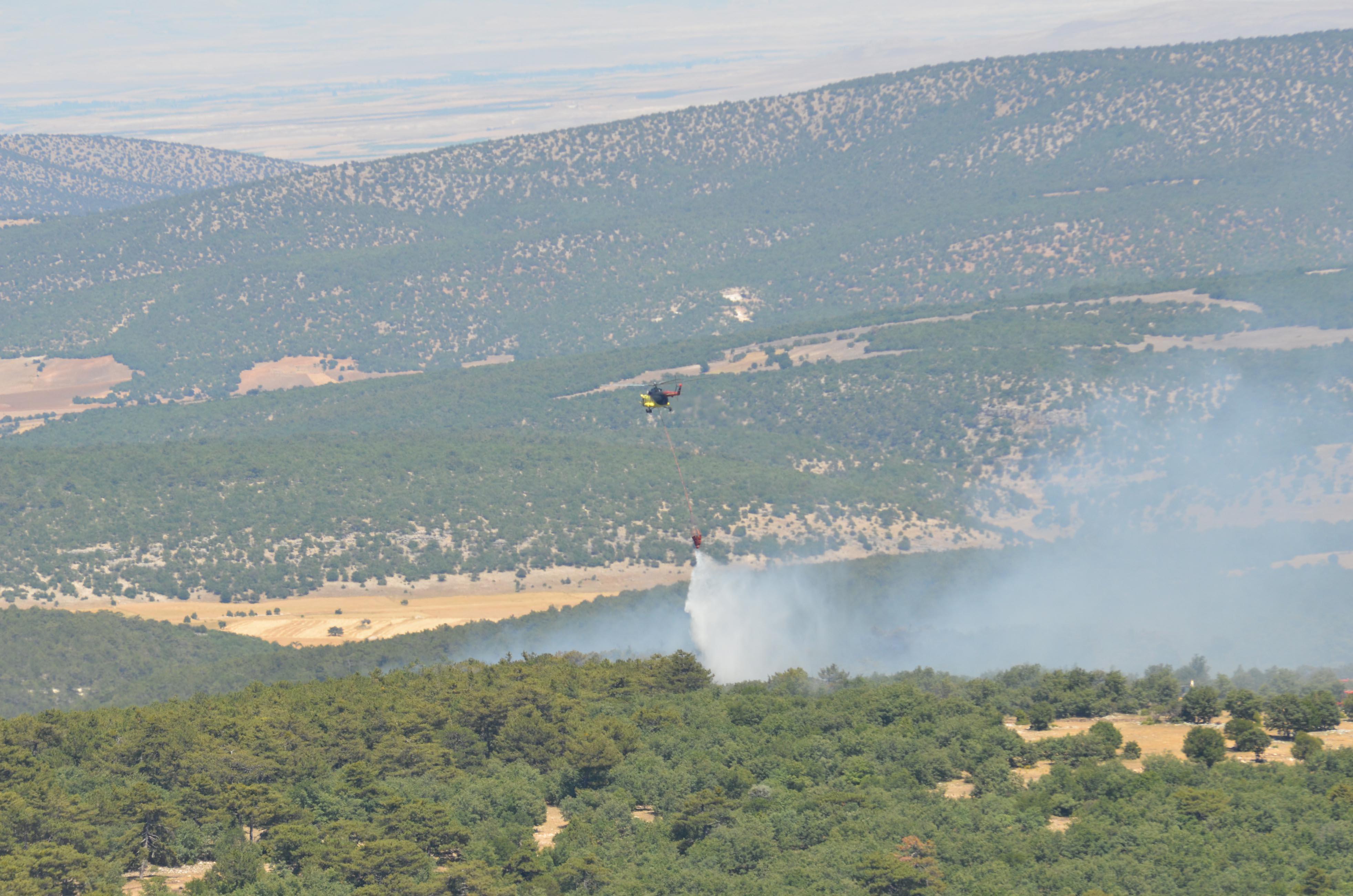 Eskişehir'in Seyitgazi ilçesi Şükranlı köyü yakınlarında saat 12.30 sıralarında çıkan orman yangınına, Eskişehir Orman Bölge Müdürlüğü'nden 60 personel, 1 helikopter ve 6 arazöz, AFAD'tan 13 personel ve 4 araç, Eti Bor Maden'den 6 personel ve 2 arazöz, Bolu Orman Müdürlüğü'nden 1 helikopter, Kütahya Orman Bölge Müdürlüğü'nden 12 personel ve 1 helikopter ile müdahale edildi. Yangın havadan ve karadan yapılan müdahale ile kontrol altına alınırken, ekiplerin soğutma çalışmaları sürüyor. (DHA)