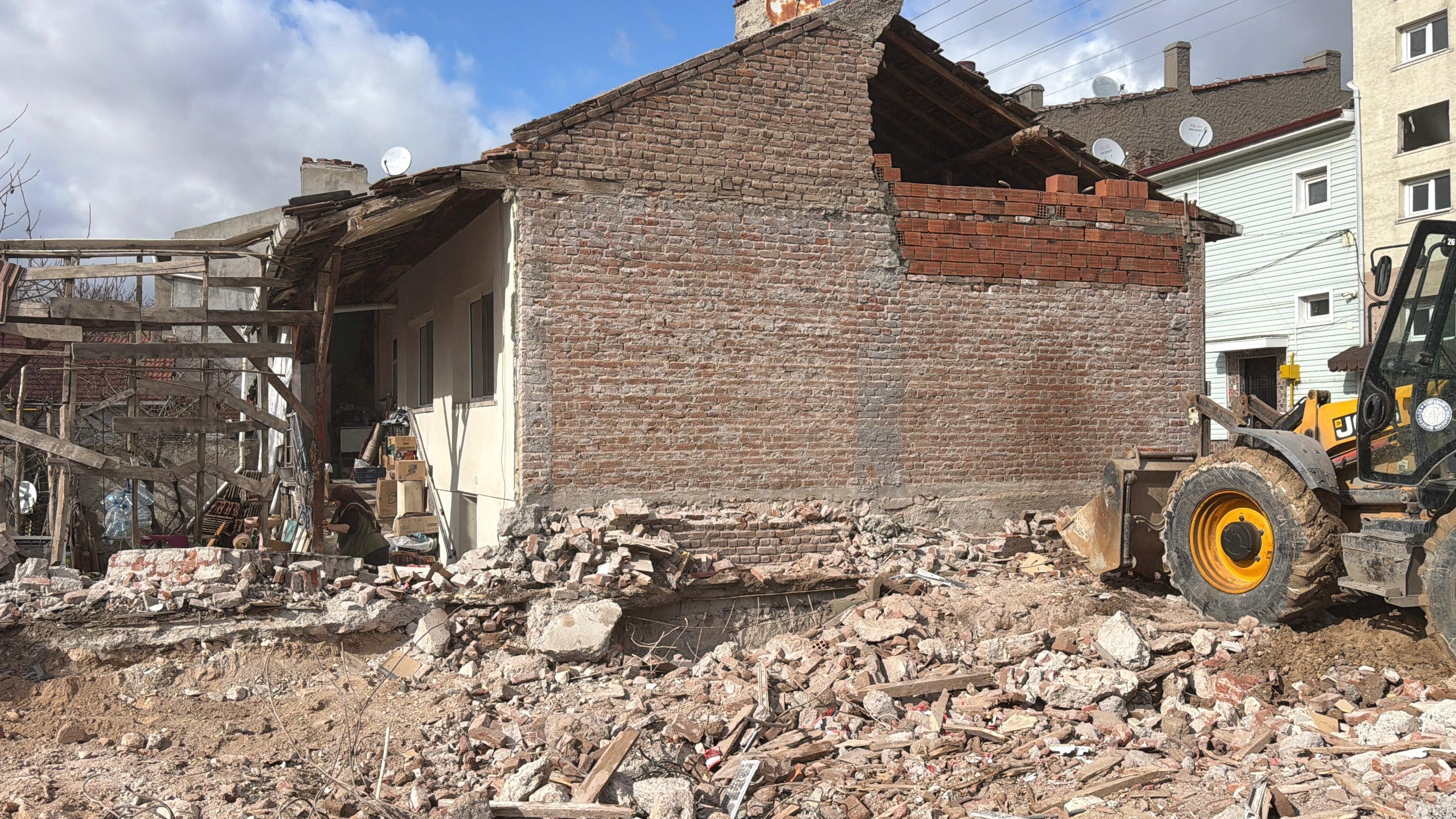 Eskişehir Büyükşehir Belediye ekipleri, Tepebaşı ilçesine bağlı Yeşiltepe Mahallesi Bilgeç Caddesi’nde yol genişletme çalışması başlattı. Bu kapsamda bazı yapıların yıkılması kararı verildi. Bu sabah ekipler tarafından bir binanın yıkımı yapılırken, bitişik nizamda bulunan Seyfi-Emine Aydoğan çiftinin oturduğu müstakil evin bahçe duvarı ve çatı bölümünün bir kısmı yıkıldı.