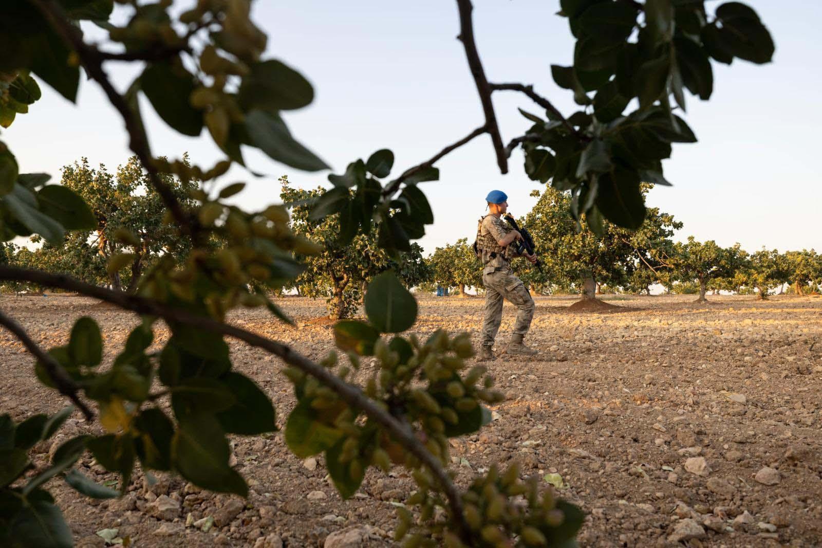 Kadir GÜNEŞ/GAZİANTEP, (DHA)- GÜNEYDOĞU Anadolu Bölgesi'nde 'yeşil altın' olarak bilinen Antep fıstığı için hasat döneminde güvenlik tedbirleri artırıldı. İl Jandarma Komutanlığı’na bağlı komando ekipleri, fıstık arazilerinde nöbete başladı.