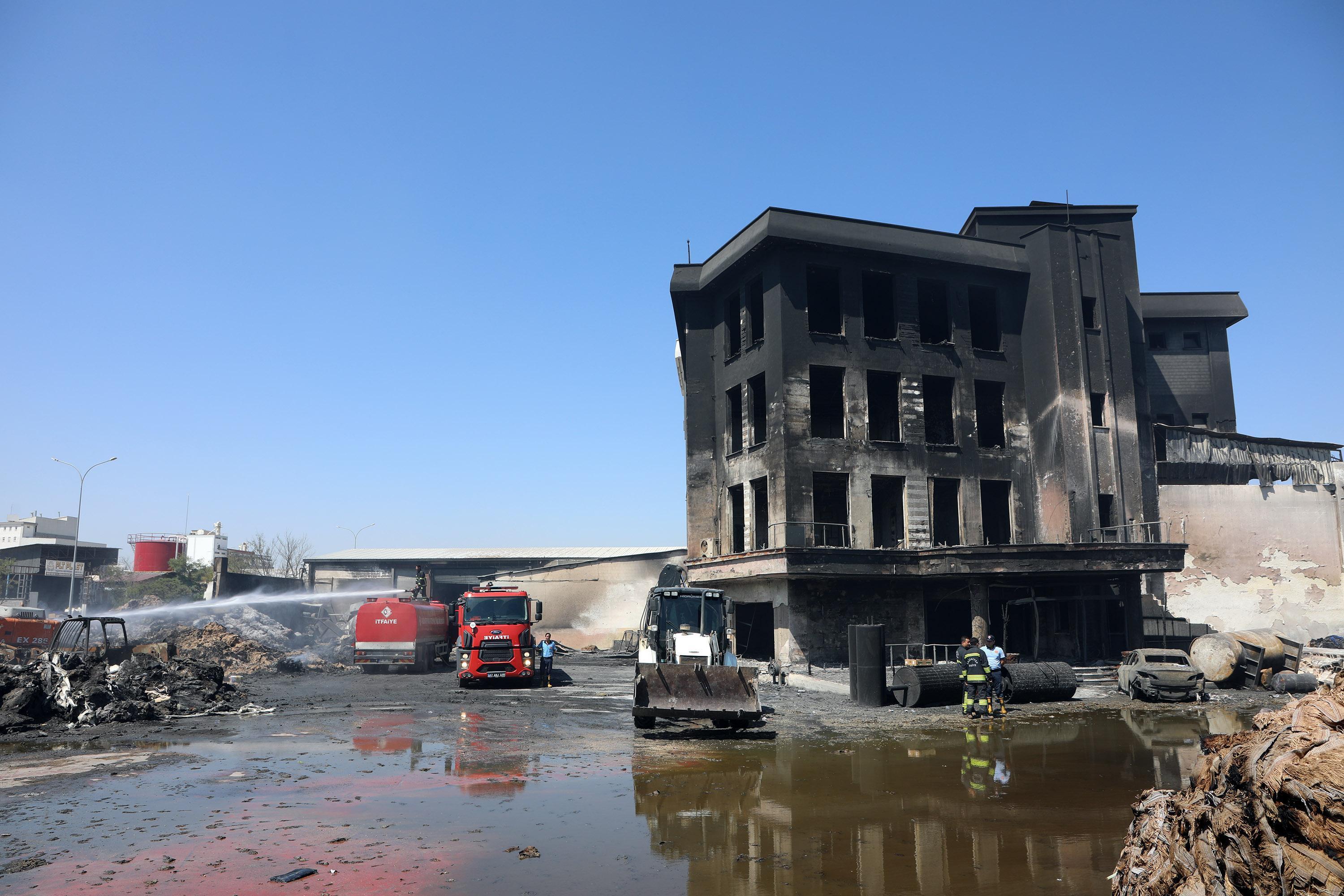 Gaziantep'te yanan geri dönüşüm fabrikasındaki hasar görüntülendi