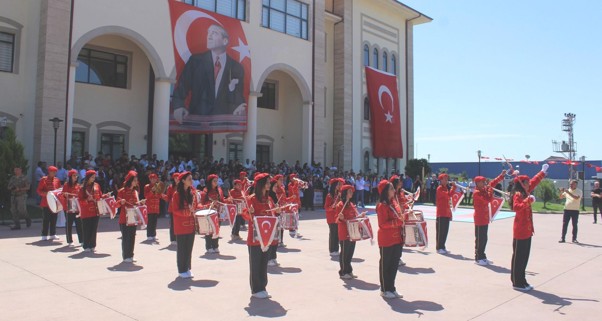 Nurdağı Stadyumunda düzenlenen törende ise, Nurdağı Kaymakamı Nurullah Cemil Erciyas, Belediye Başkanı Mehmet Yıldırır, İlçe Milli Eğitim Müdürü Musa Yıldırım, daire amirleri, öğretmen, öğrenci ve vatandaşlar katıldı.