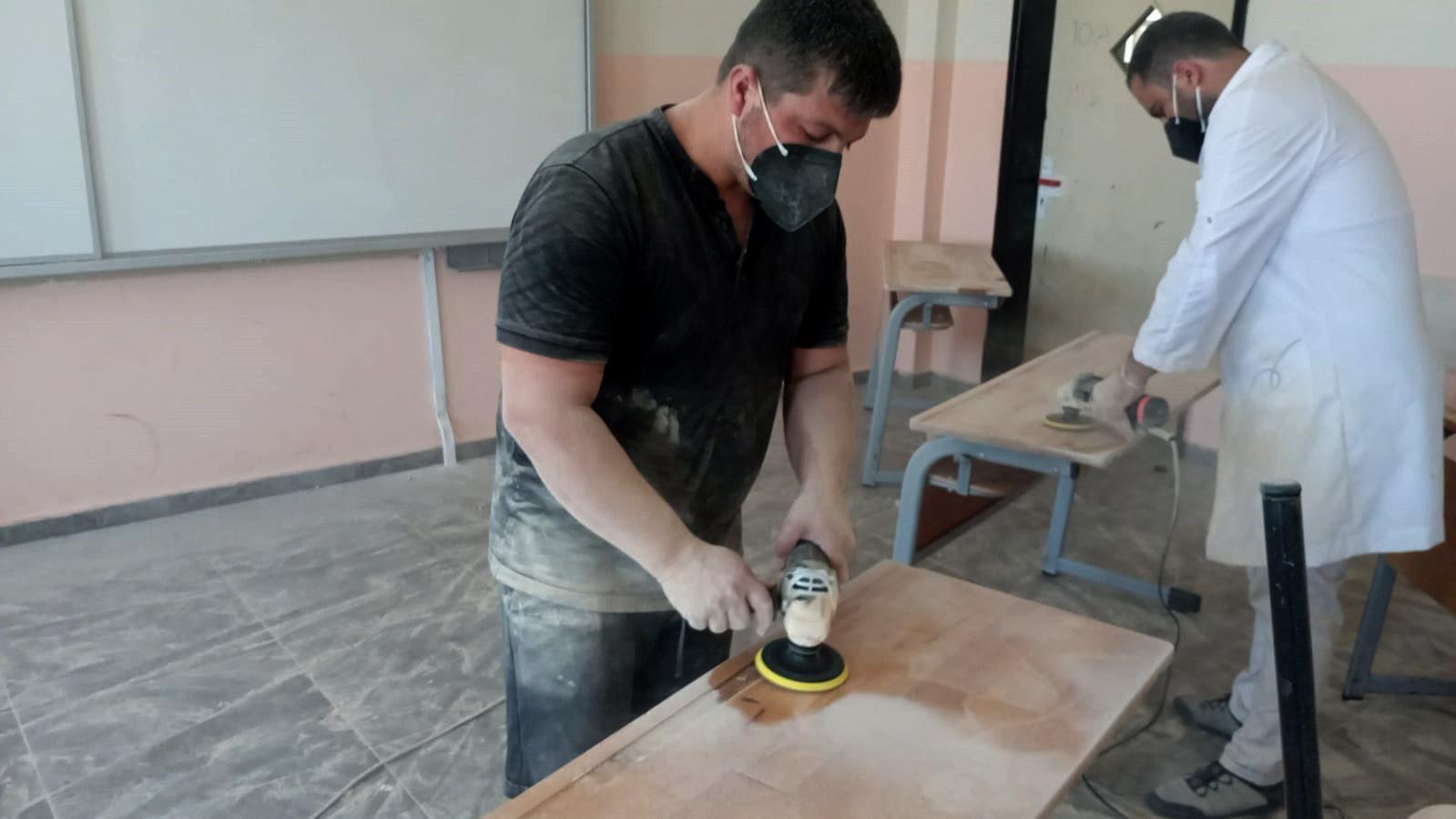 Gaziantep'te öğretmenler sıraları onarıp, sınıfları boyadı