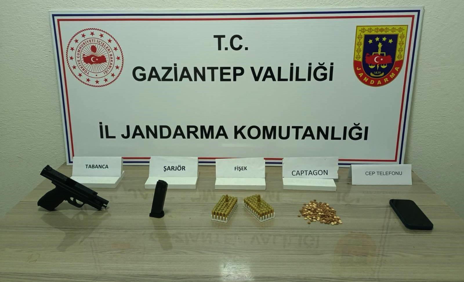 İl Jandarma Komutanlığı ekiplerinin, kaçakçılıkla mücadele yönelik yürütülen çalışma kapsamında tespit edilen adrese operasyon düzenlendi. Adreste yapılan aramada 200 captagon,1 ruhsatsız tabanca,102 tabanca mermisi ve 1 cep telefonu ele geçirildi. Ekipler uyuşturucuya, tabanca ve mermilere el koyarken M.A.'yı gözaltına aldı.