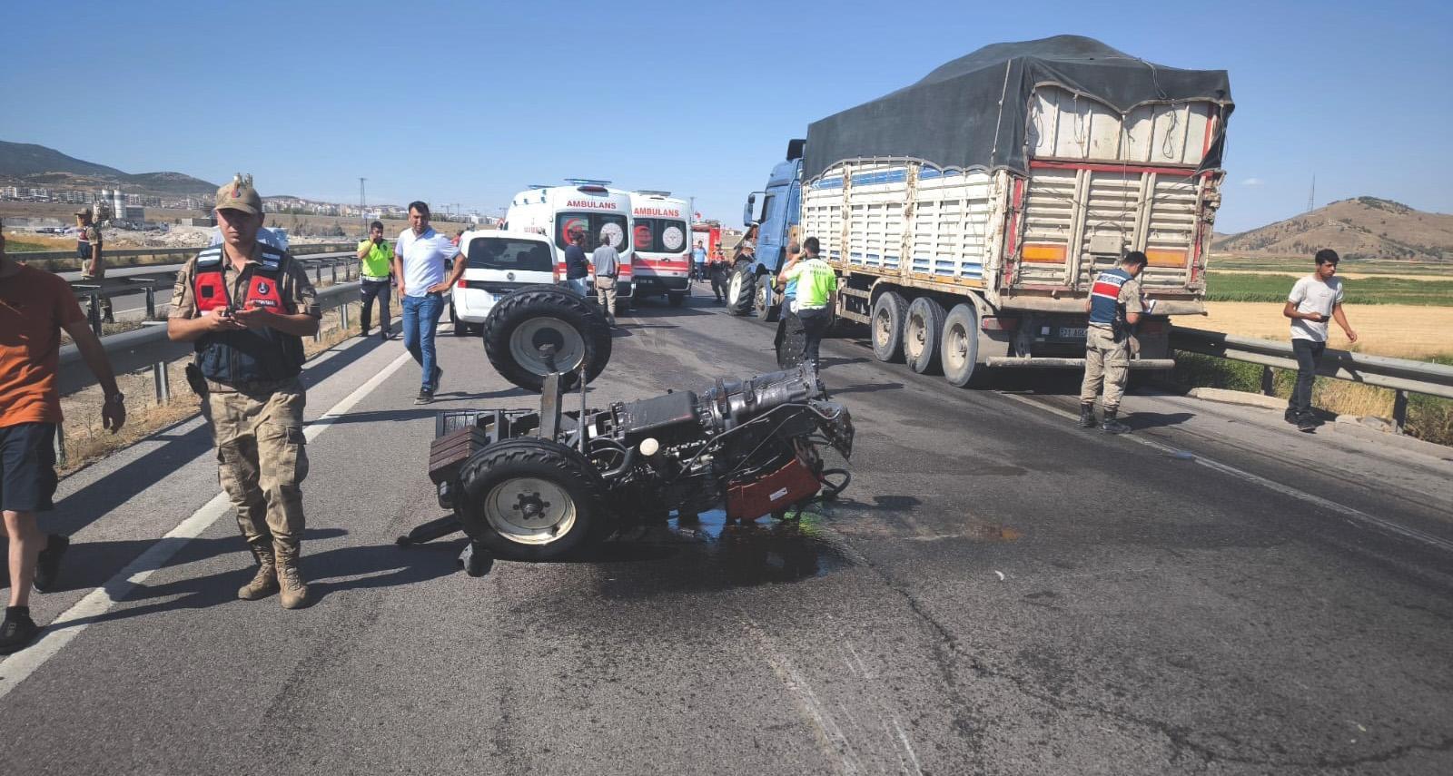 TIR’ın çarptığı traktör ikiye bölündü: 2 yaralı