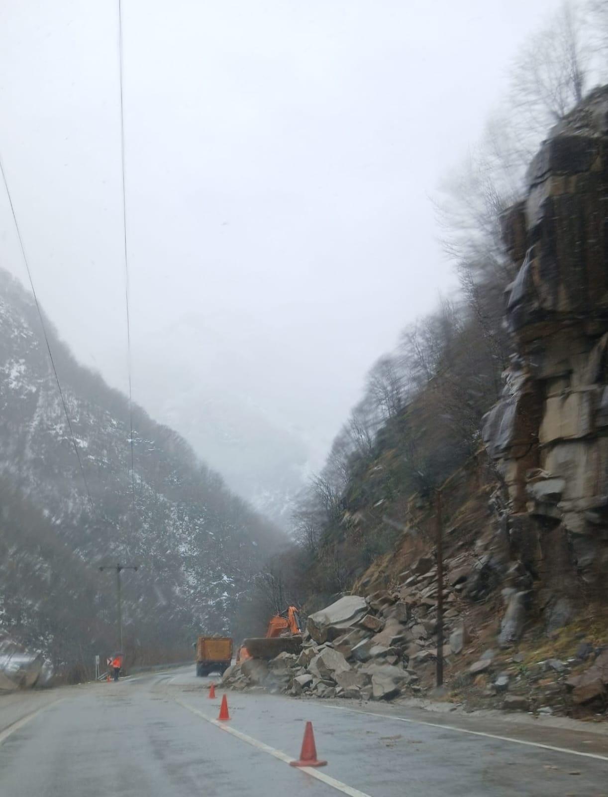 Cevahir TOPALOĞLU/GÜMÜŞHANE, (DHA)- GÜMÜŞHANE- Giresun kara yolu, iki ayrı noktada meydana gelen heyelan nedeniyle ulaşıma kapandı. Ekiplerin temizlik çalışmalarının ardından kara yolu yeniden ulaşıma açıldı.