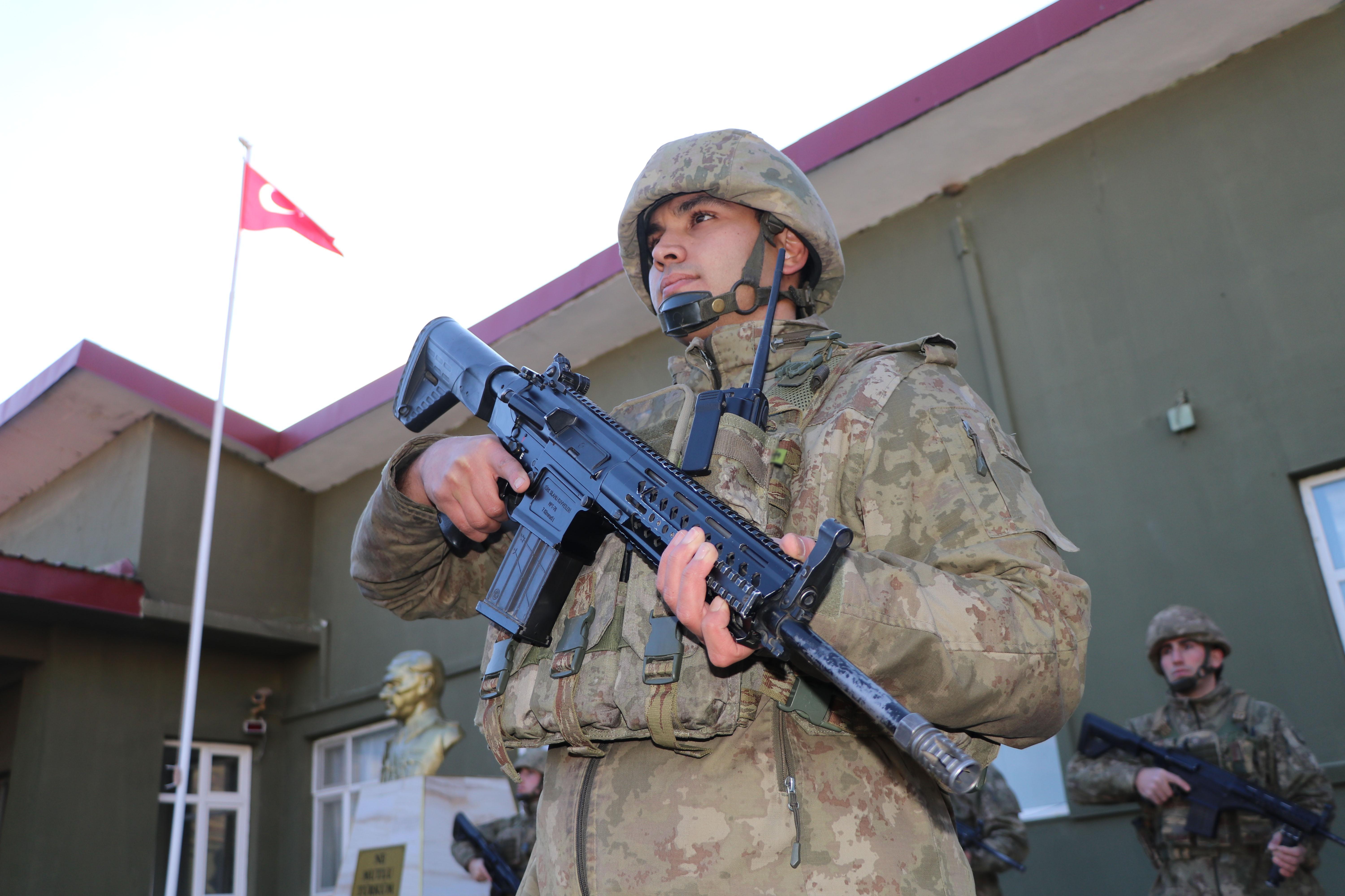 İlçe merkezine 25 kilometre uzaklıkta olan hudut karakolundaki hudut kartalları, ASELSAN’ın geliştirdiği tamamı yerli, milli ve son teknolojik cihazlarla donatılan üs bölgesinde 7/24 görev yapıyor. Keşif ve gözetleme yaparak yerli MPT-76 piyade tüfeği ile terörist sızmalarına karşı önlem alan hudut kartalları, sınır bölgede dedektör cihazlarla arazi arama tarama faaliyeti yapıp sınırda kuş uçurtmuyor. Yeni yılı eli tetikte karşılayan askerler hep bir ağızdan, hudut tekmili okuyup, 'Mutlu yıllar Türkiye' diyerek herkesin yeni yılını kutladı.