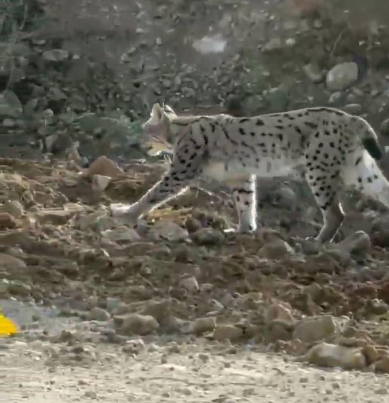 Mehmet ÖZKAN/HAKKARİ, (DHA)- HAKKARİ'nin Çukurca ilçesinde nesli tükenme tehlikesi altında bulunan vaşak, cep telefonu kamerasıyla görüntülendi.
