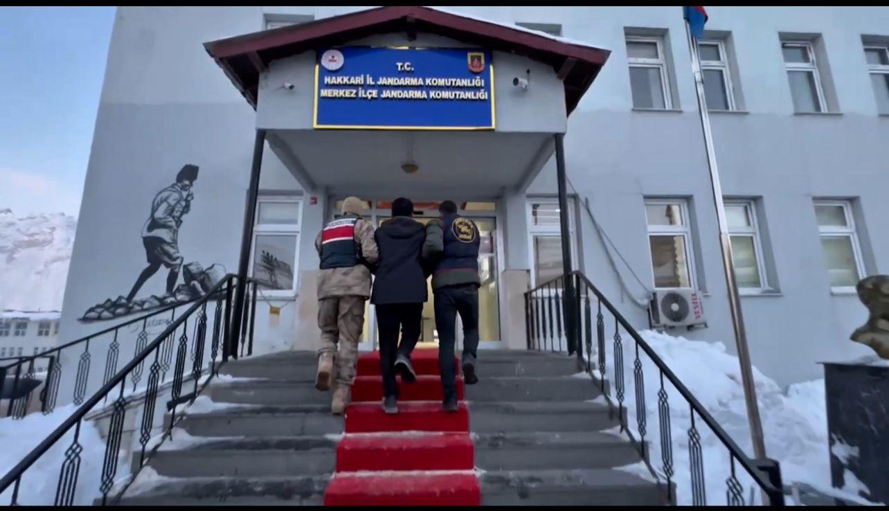 İl Jandarma Komutanlığı'na bağlı Jandarma Suç Araştırma Timi (JASAT), 'Uyuşturucu madde ticareti yapma veya sağlama' suçundan hakkında 22 yıl 4 ay kesinleşmiş hapis cezası bulunan B. A.'ya İHA destekli operasyon düzenledi. Düzenlenen operasyonla gözaltına alınan hükümlü, jandarmadaki işlemlerinin ardından sevk edildiği adli makamlar tarafından tutuklanarak Hakkari Kapalı Ceza İnfaz Kurumu’na teslim edildi. (DHA)