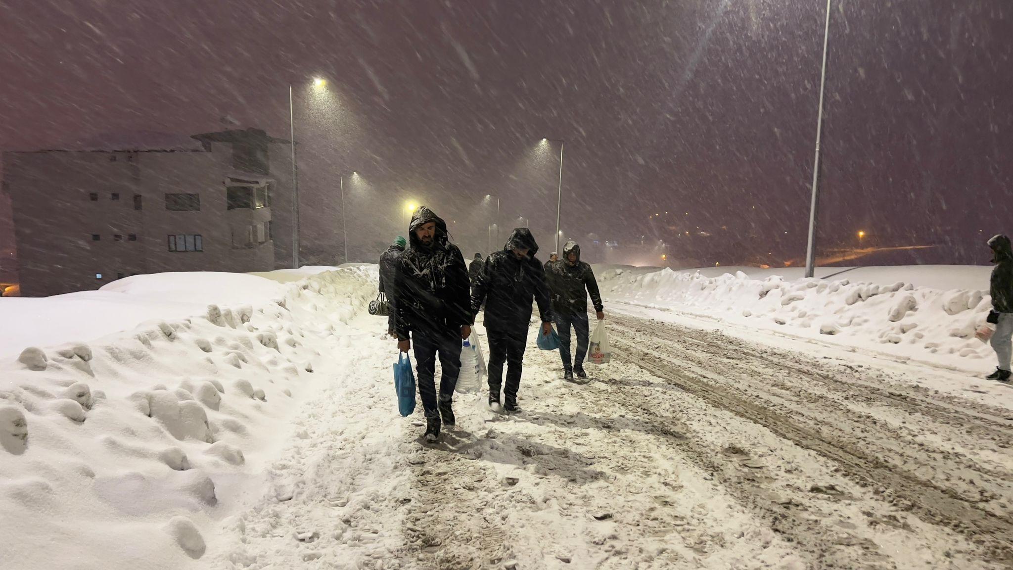 Meteorolojinin uyarısı sonrası Yüksekova ilçesinde akşam saatlerinde kar ve tipi etkili oldu. Tipiye yakalanan bazı vatandaşlar zor anlar yaşarken, trafikte zaman zaman aksamalar yaşandı. Kar kalınlığı 10 santimetreye kadar ulaşırken, birçok araç yolda kaldı. Yüksekova belediyesine ait iş makineleri tarafından yapılan kar temizliği sonrası, yolda kalan araçlar bulundukları yerden çıkarıldı. Yetkililer, vatandaşlara zorunlu olmadıkça dışarı çıkmamaları uyarısında bulundu. (DHA)