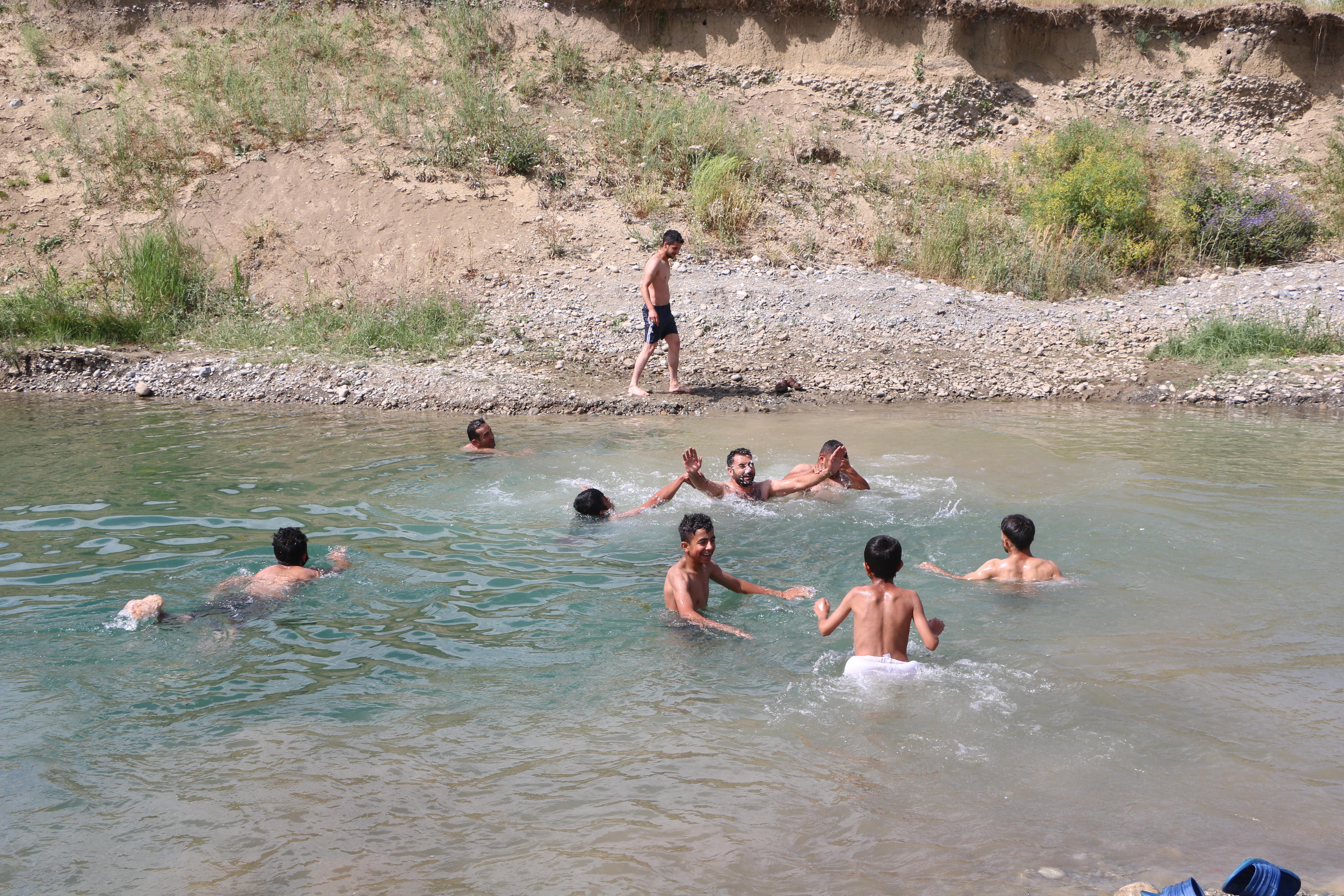 Yaşar KAPLAN/YÜKSEKOVA (Hakkari), (DHA)- HAKKARİ’nin Yüksekova ilçesinde aşırı sıcaktan bunalanlar, Orşe Deresi'nde yüzerek serinlemeye çalışıyor.