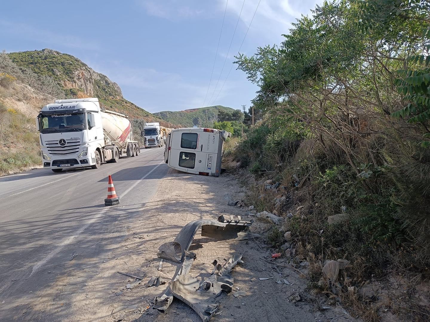 Samim SELÇUK/ HATAY, (DHA) – HATAY’ın Altınözü ilçesinde kontrolden çıkarak devrilen minibüsteki 3 kişi yaralandı.