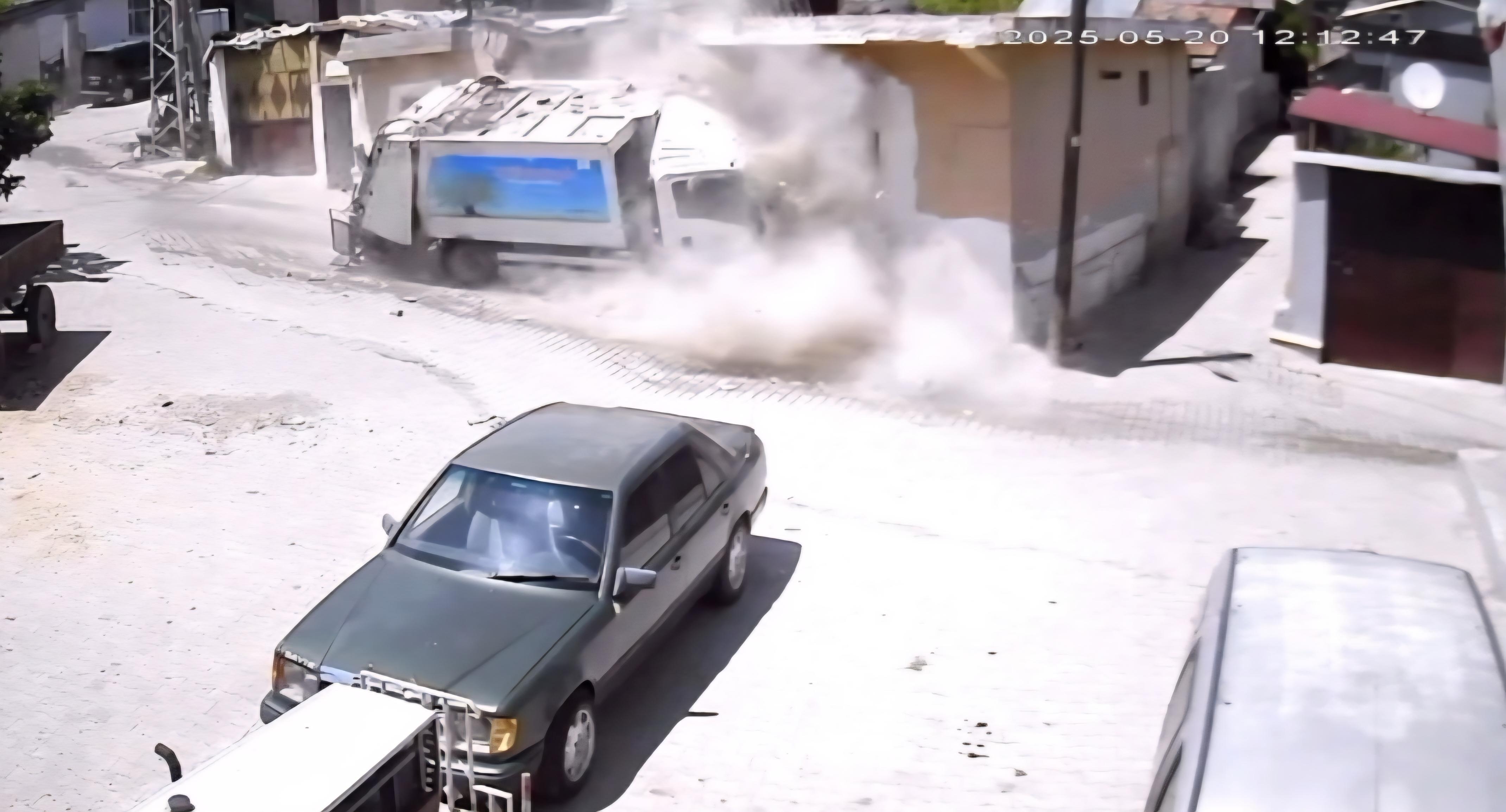 Kaza dün öğle saatlerinde Kıyıgören Mahallesi'nde meydana geldi. Yokuşta sürücüsünün direksiyon hakimiyetini kaybettiği çöp kamyonu kontrolden çıkarak metruk bir eve çarptı. Çarpışmanın etkisiyle evin duvarları yıkıldı. Çevredekilerin ihbarıyla kaza yerine polis ve sağlık ekipleri sevk edildi. Sağlık ekipleri, kazada hafif yaralanan sürücüyü ambulansla hastaneye kaldırdı. Kaza anı çevredeki bir iş yerinin güvenlik kamerasına yansıdı.