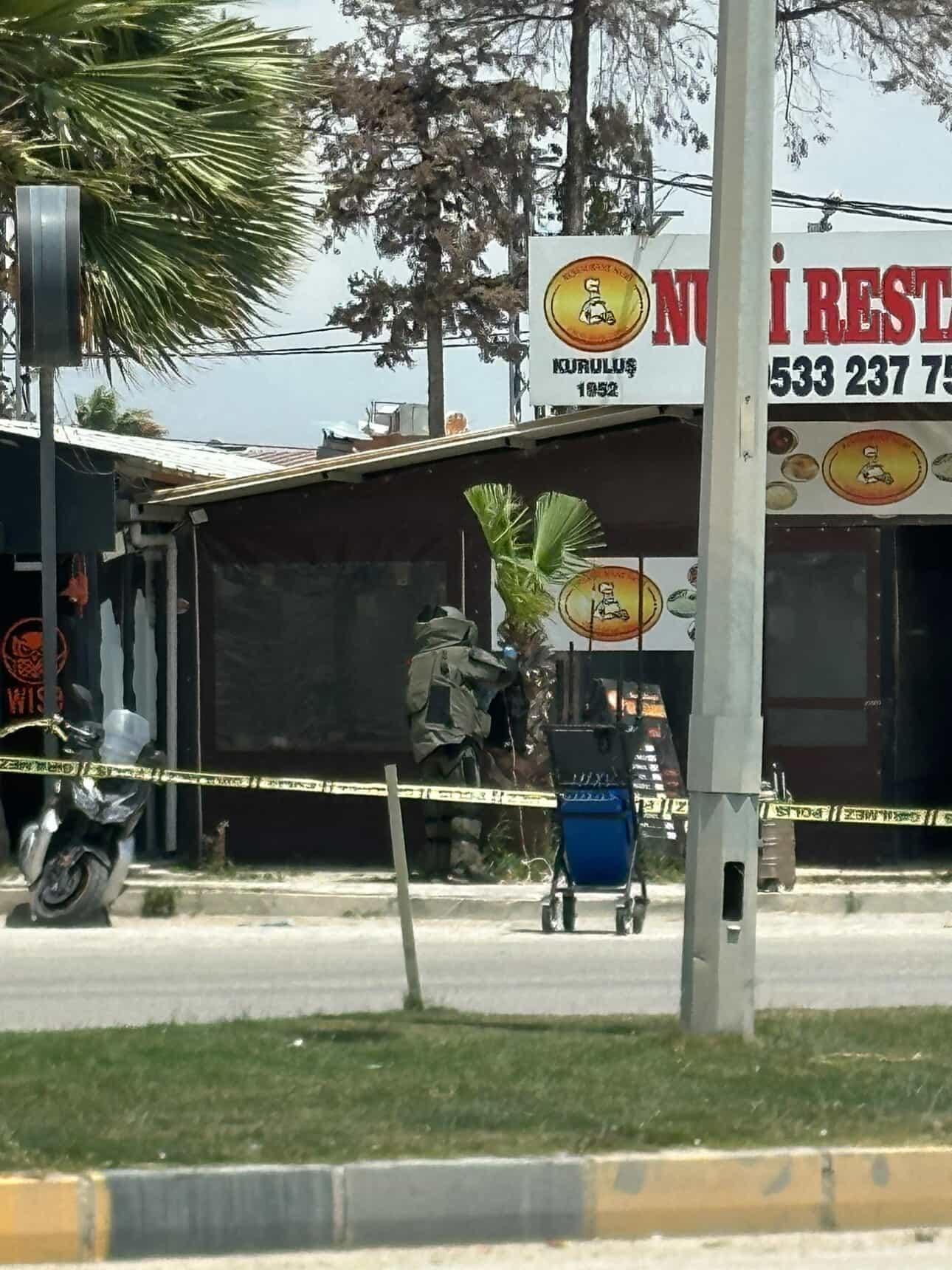 Antakya ilçesinde prefabrik çarşıdaki bir restoranın önüne kimliği belirsiz bir kişi bırakılan şüpheli valizi gören vatandaşlar polise haber verdi. İhbar üzerine bölgeye bomba imha ekipleri sevk edildi. Çevrede güvenlik önlemi alan polis, bölgedeki yolları araç ve yaya trafiğine kapattı. Fünyeyle patlatılan valizden kıyafet çıktı. Tedbir amaçlı kapatılan yollar, patlatma işleminin ardından trafiğe yeniden açıldı. (DHA)