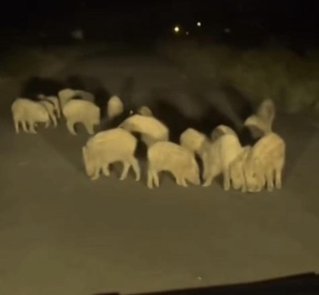 Gece saatlerinde merkez Antakya ilçesine bağlı Melekli Mahallesi'nde yaban domuzu sürüsü görüldü. Yemek bulmak için mahalleye inen domuz sürüsü, vatandaşlar tarafından cep telefonu kamerasıyla kayda alındı. Bir süre yolda sürü halinde yiyecek arayan domuzlar, geldikleri yöne giderek gözden kayboldu. (DHA)