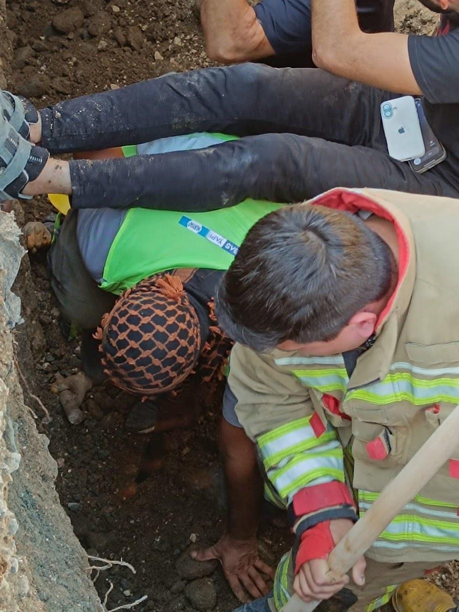 Samim SELÇUK/ HATAY, (DHA)- HATAY’ın Antakya ilçesinde inşaat alanında meydana gelen toprak kayması sonucu vücudunun alt kısmı göçük altında kalan işçi, ekiplerin çalışması sonucu yaralı olarak kurtarıldı.