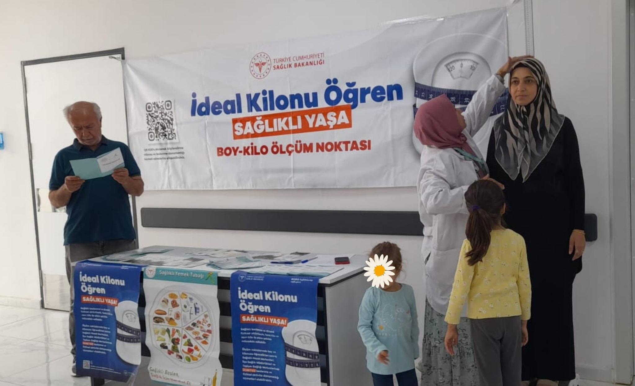 Samim SELÇUK/ HATAY, (DHA) – HATAY’ın Antakya ilçesinde sağlık ekipleri, Sağlık Bakanlığı tarafından başlatılan 'İdeal Kilonu Öğren, Sağlıklı Yaşa Kampanyası' kapsamında vatandaşların boy ve kilo ölçümlerini yapmaya başladı.