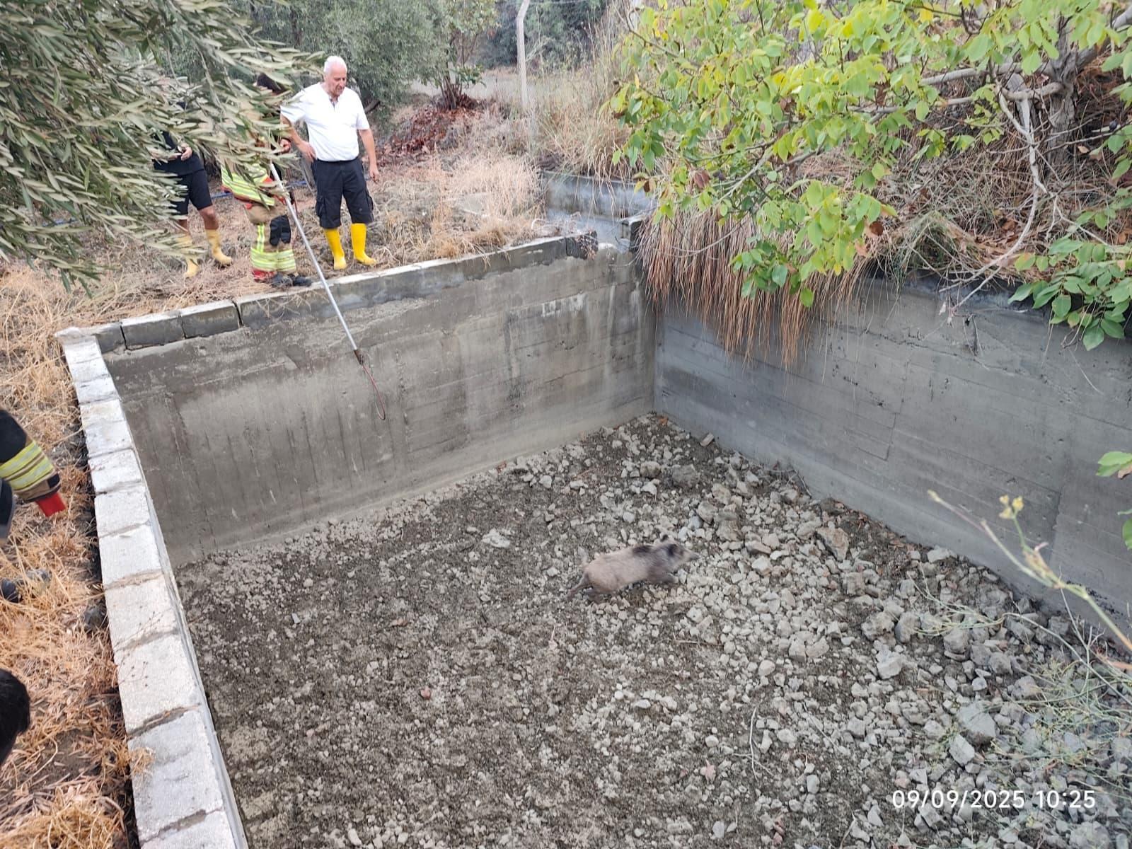 Ufuk AKTUĞ/ARSUZ(Hatay), (DHA)- HATAY'ın Arsuz ilçesinde düştüğü boş sulama havuzunda mahsur kalan domuzu itfaiye ekipleri kurtardı.