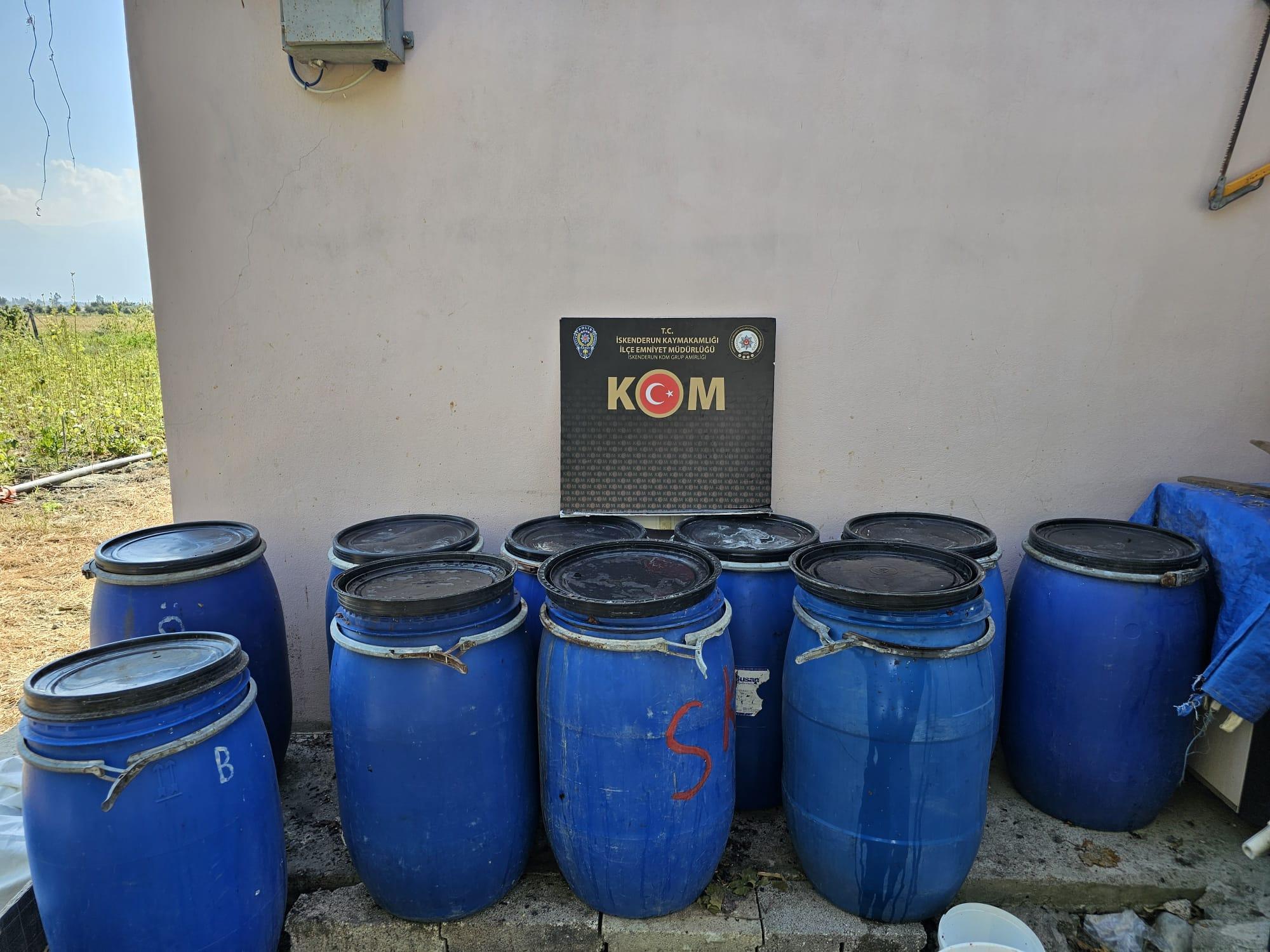 Emniyet Müdürlüğü ekipleri kaçakçılık suçlarına yönelik çalışmalar kapsamında Arsuz Akçalı ve Gülcihan mahallelerinde üç ayrı adrese baskın yaptı. Adreslerde yapılan aramada bin 35 litre sahte içki ele geçirildi. Olayla ilgili R.Y. ve C.Y. gözaltına alındı. Şüpheliler hakkında adli işlem başlatıldı. (DHA)