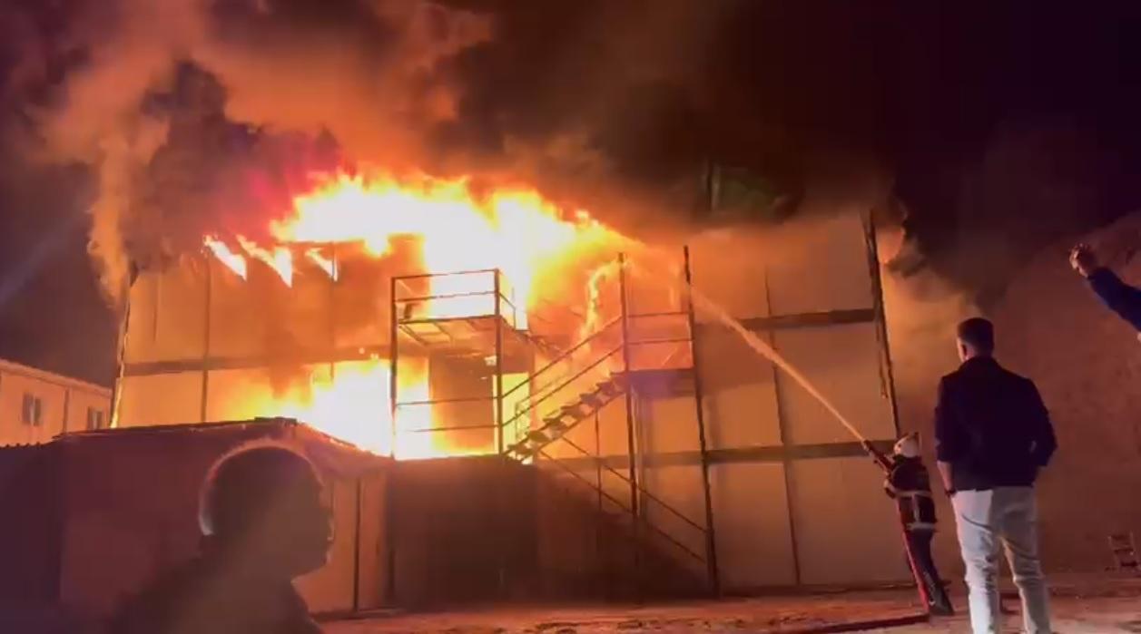 Şantiyede işçilerin yatakhanesinde çıkan yangın söndürüldü
