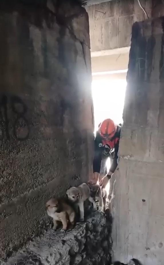 Ufuk AKTUĞ/DÖRTYOL(Hatay),(DHA)- HATAY'ın Dörtyol ilçesinde çayda mahsur kalan yavru köpekler, itfaiye ekipleri tarafından kurtarıldı.