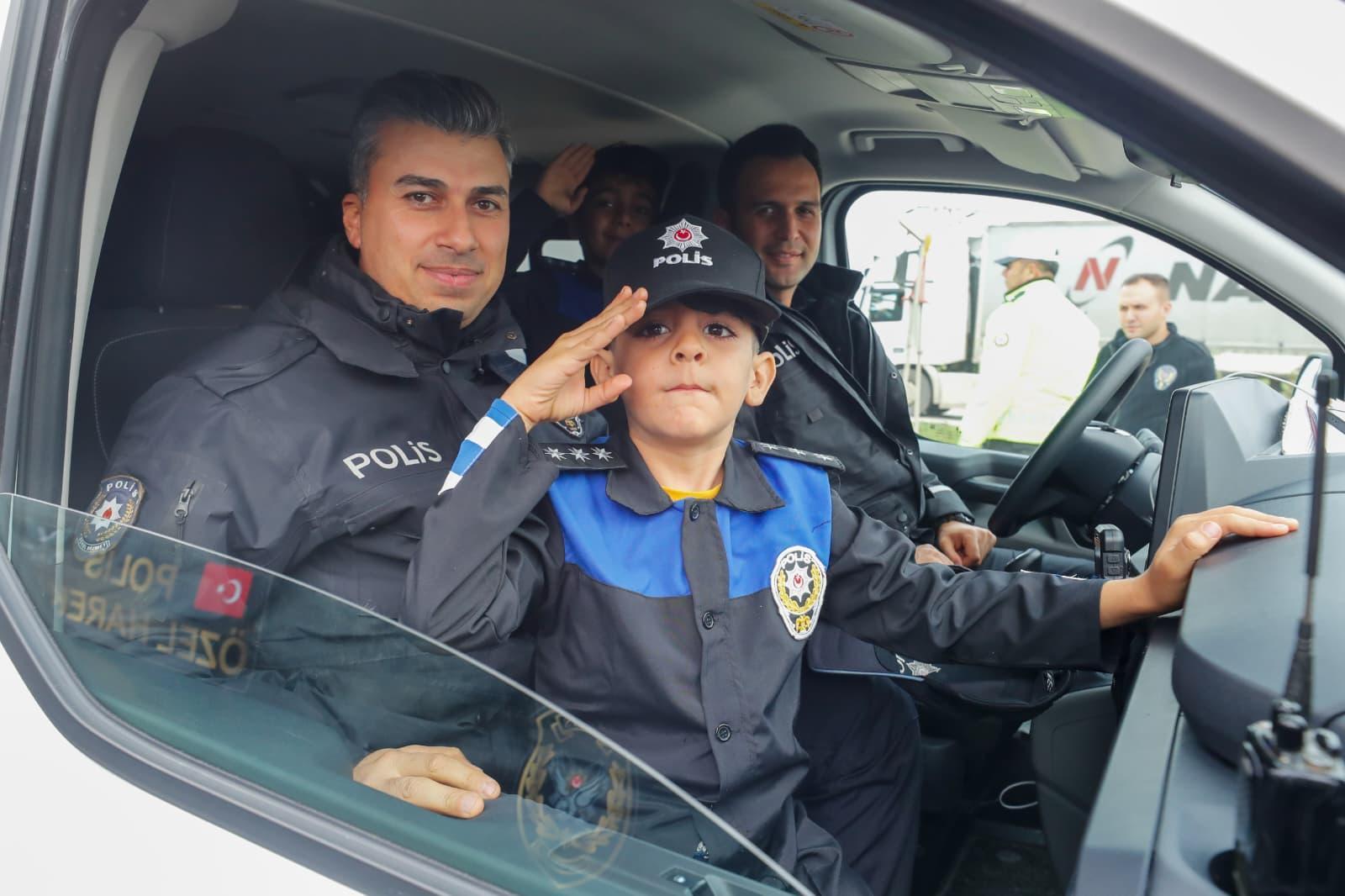 Valilik ile İl Emniyet Müdürlüğü iş birliğinde gerçekleştirilen programda, jandarma ve polis kamuflajı giyen çocuklar ekiplerle birlikte uygulama noktalarında görev aldı. Denetimler sırasında araçları durduran çocuklar, sürücülere trafik kurallarının önemini anlattı; broşür dağıtıp çikolata ikram etti. Polis ekipleriyle birlikte denetim yapmanın heyecanını yaşayan çocuklar, sürücülerle sohbet ederek renkli ve unutulmaz anlara imza attı. Çocukların uygulama esnasındaki samimi tavırları, denetime katılan sürücülere tebessüm yaşattı. Programın, çocukların toplumsal farkındalığını artırmasının yanı sıra trafik bilincine de katkı sağlaması hedeflendi. (DHA)