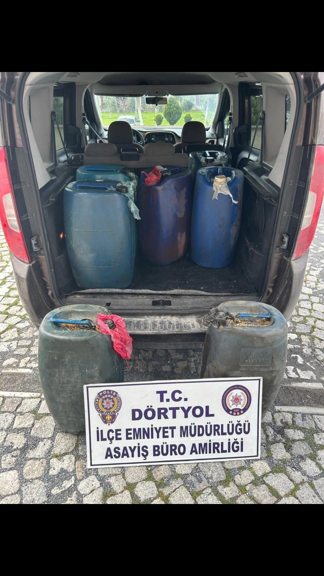 19 Mart ve 24 Mart'ta Dörtyol ilçesine bağlı Özerli ile Numune Evler mahallelerinde park halindeki 3 TIR'ın yakıt deposundan toplam 1150 litre mazot çalındı. Hırsızlık olayının ardından soruşturma başlatan polis, mazotun A.A. tarafından çalındığını tespit etti. Adresi belirlenen şüpheli, polis ekiplerince 7 bidon halinde 420 litre mazotla yakalandı. Şüpheliden çalıntı mazot satın alan kişinin Ö.Z. olduğu saptandı. Ö.Z.'ye suç eşyası satın almaktan işlem yapıldı. Hırsızlık şüphelisi A.A. ise adli kontrol şartıyla serbest bırakıldı. (DHA)