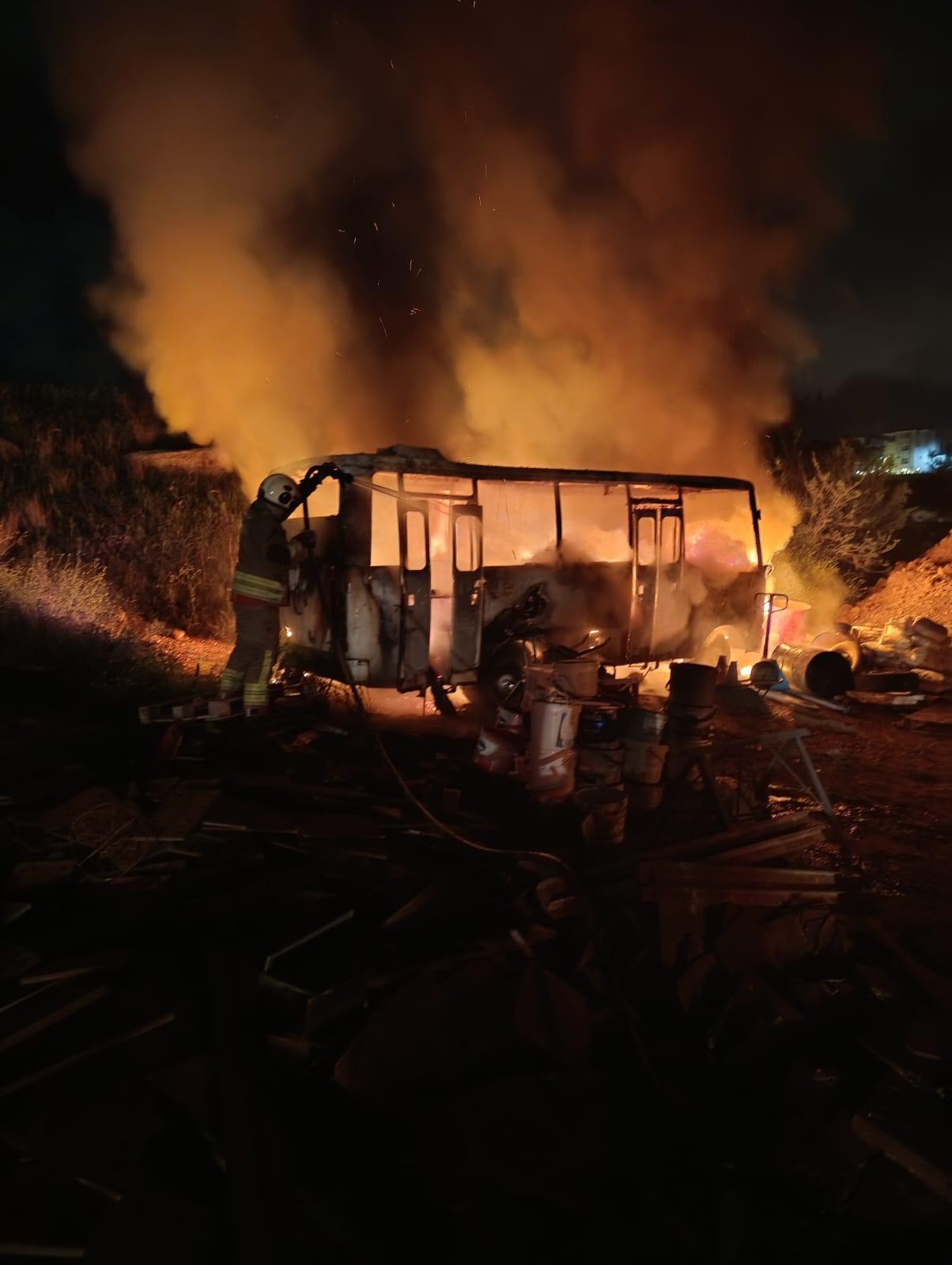 Ufuk AKTUĞ/BELEN(Hatay),(DHA)- HATAY'ın Belen ilçesinde yangın çıkan bir konteyner ve otobüs, kullanılamaz hale geldi.