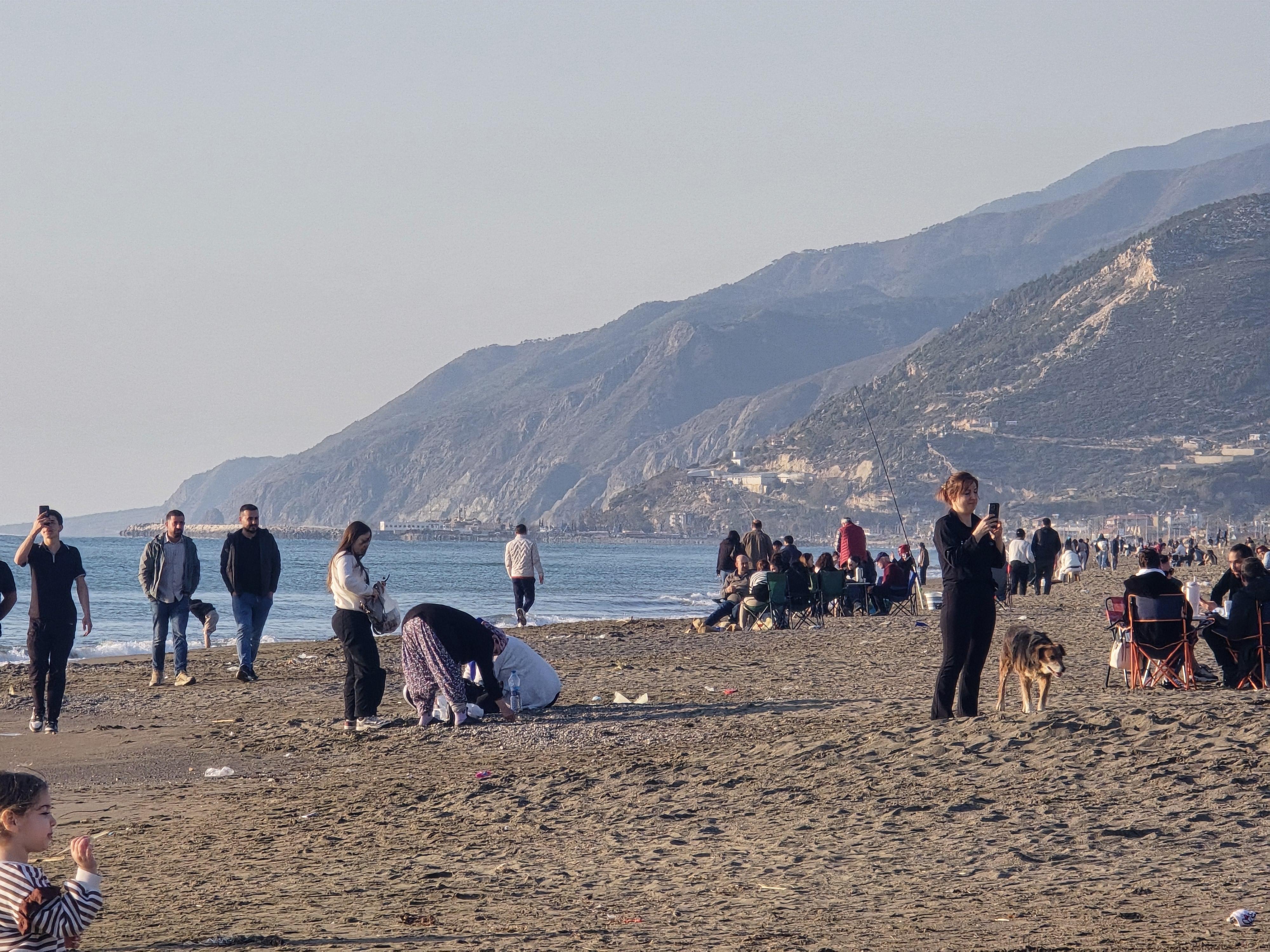 Sabah saatlerinden itibaren sahile gelen vatandaşlar, Samandağ ilçesinde bulunan sahil bandında yürüyüş yaptı, çocuklarıyla oyun oynadı. Bazı vatandaşlar ise yanlarında getirdikleri seyyar sandalyelerle sahil kenarında oturarak sohbet etti. Deniz manzarası eşliğinde vakit geçiren aileler, hafta sonunun tadını çıkardı. Havanın mevsim normallerinin üzerinde seyretmesiyle birlikte sahil kesiminde zaman zaman yoğunluk oluştu. Özellikle gün batımına doğru artan kalabalık, sahil boyunca hareketliliğe neden oldu.