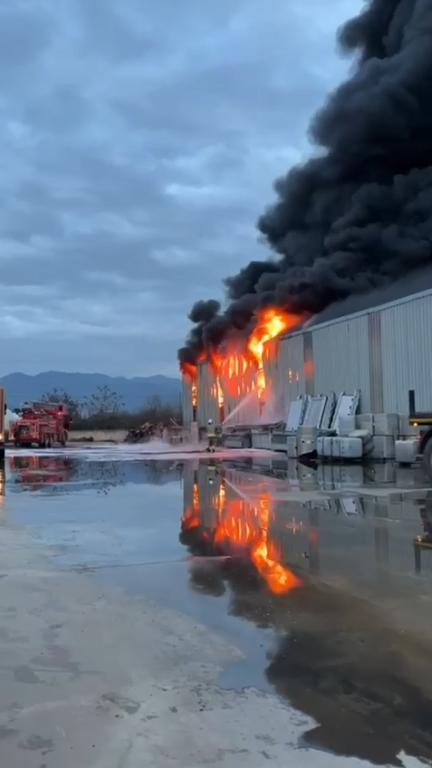 Alican GÜMÜŞ/HATAY,(DHA)- HATAY’ın Dörtyol ilçesinde bulunan bir lojistik firmasının içerisinde lastik bulunan depo bölümünde yangın çıktı. İtfaiye ekiplerinin yangını söndürme çalışmaları sürüyor.