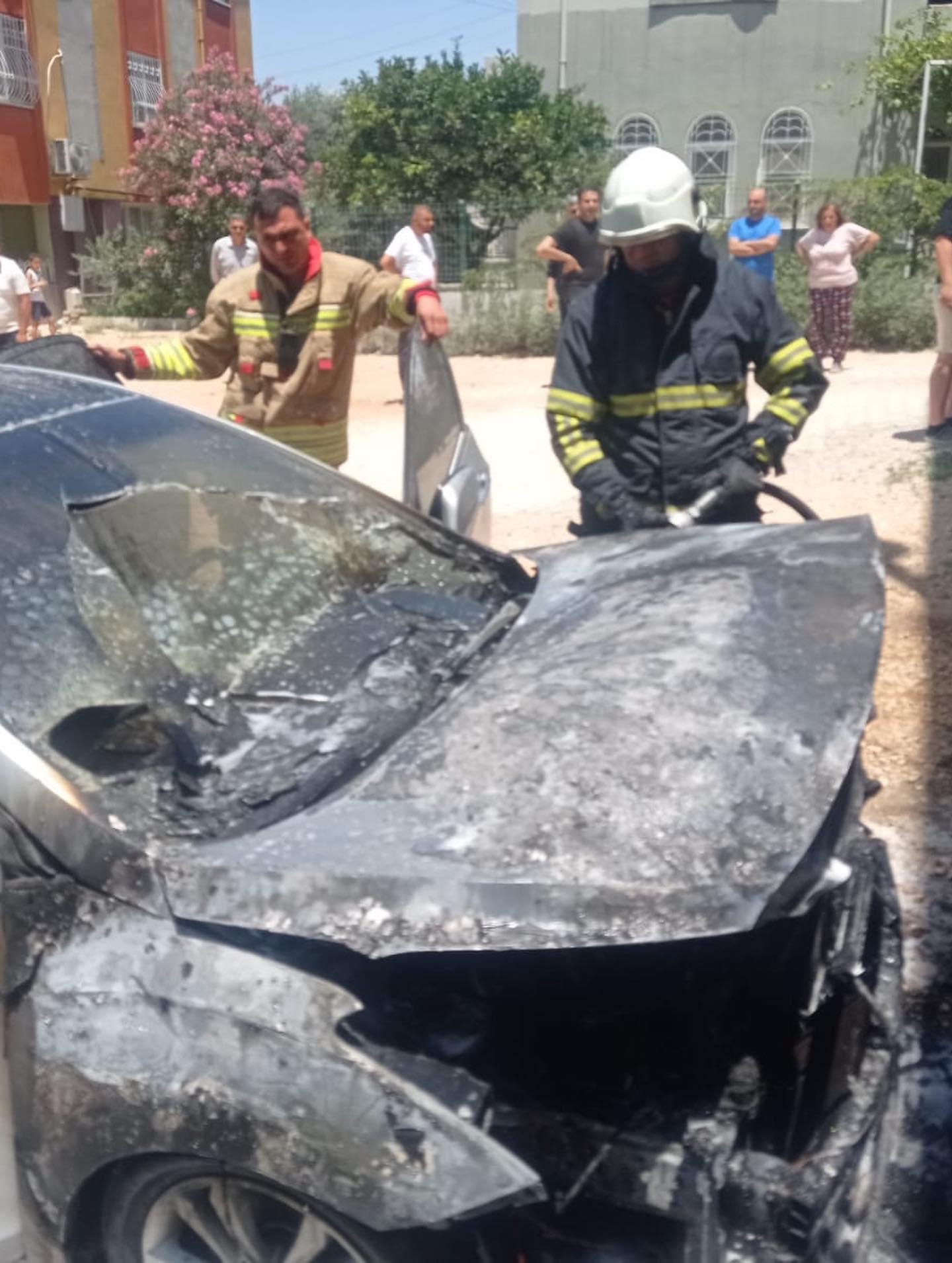 Defne ilçesi Harbiye Mahallesi'nde saat 14.00 sıralarında park halindeki bir otomobilin motoru bilinmeyen bir nedenle alev aldı. İhbar üzerine itfaiye ekibi sevk edildi. İtfaiyenin müdahalesiyle alevler söndürülürken, otomobil kullanılamaz hale geldi. (DHA)