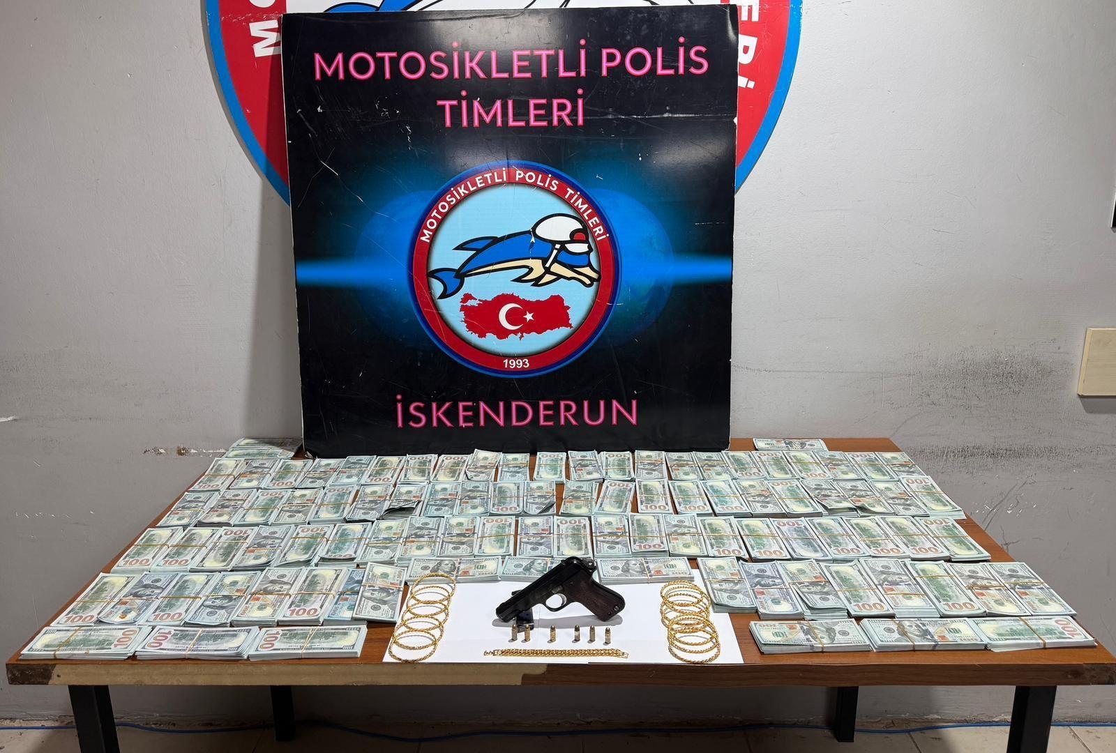 İskenderun ilçesinde uygulama yapan polis ekibi, şüphe üzerine bir araca 'dur' ihtarında bulundu. Ekibin durdurduğu araçta yapılan aramada 100 dolar banknotlar halinde sahte 1 milyon dolar, 1 ruhsatsız tabanca ile silaha ait mühimmatlar ele geçirildi. Araçta bulunun Ö.F.T., U.Ş. ve H.A. gözaltına alındı. Şüpheliler hakkında '6136 Sayılı Kanuna Muhalefet' ve 'Parada Sahtecilik' suçlarından yasal işlem başlatıldı. (DHA)